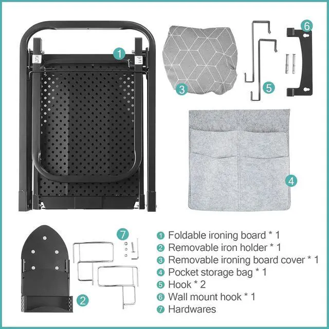 Easy to Use: The iron holder is ready to use after installing the nuts and screw. Please attach the provided hooks to a door or mount wall-mounted brackets, then hang the ironing board for immediate use. Before unfolding the iron board, please release the latch on the back