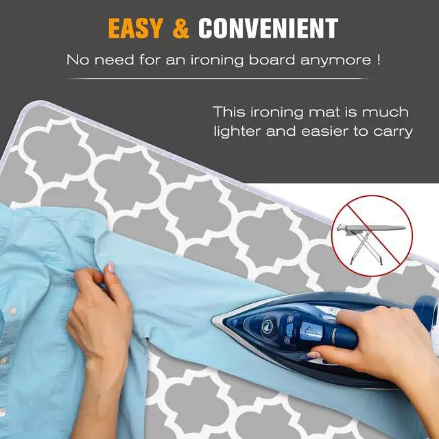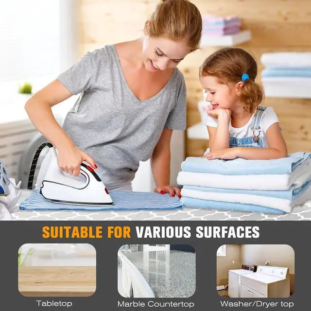 DURABLE AND ANTI-SLIDEMade of 4 layers thicken material with extra thick padding is scratch-proof, waterproof and heat-resistant. Protects table or bed from burning as well as allows steam to go through and also holds heat for quick ironing