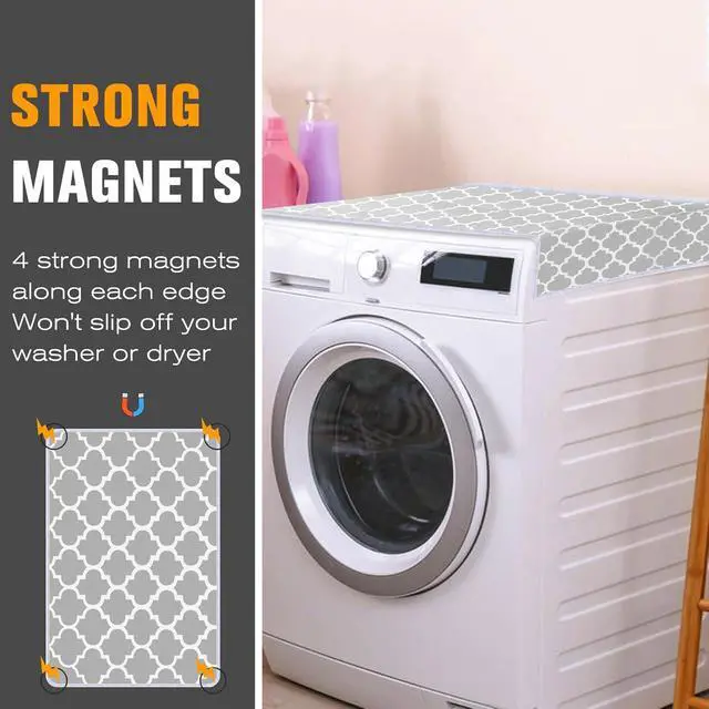 STAYS IN PLACE This ironing pad is designed to stay in place; 4 heavy duty magnets embedded in the lining easily attach to washing machines and dryers; plus, The bottom of the PVC glue point to prevent sliding while ironing clothes