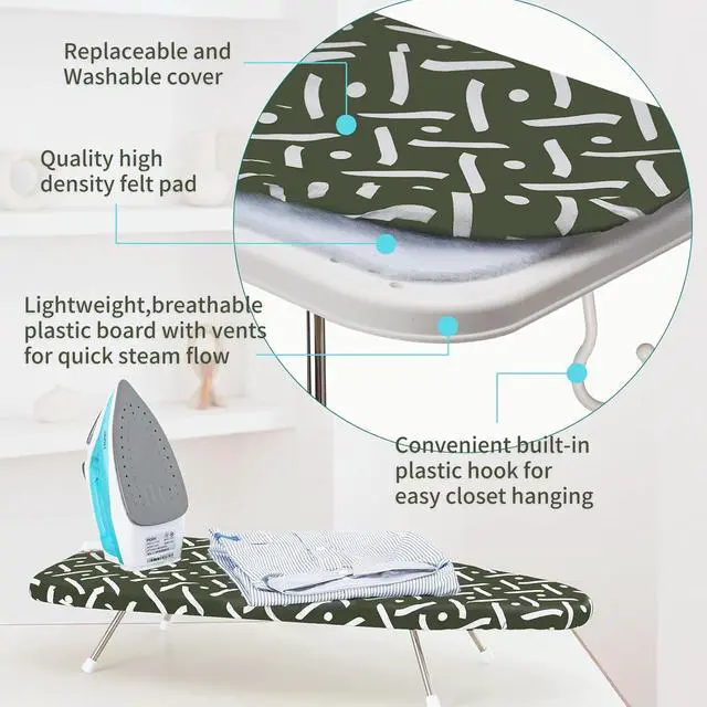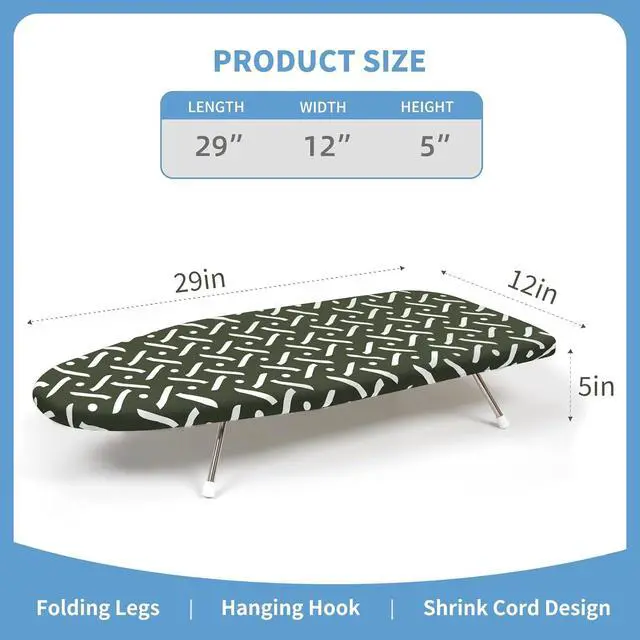 Slieton Tabletop Ironing Board 12"x29" Compact Portable Ironing Board with Thick Felt Padding, Heat Resistant Cover, Stainless Steel Legs, Space-Saving Design
