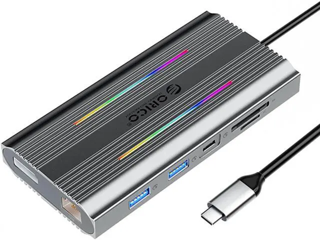 ORICO 12in1 USB C Dock with RGB,USB C Type C to HDMI-Compatible-compatible 4K60Hz, DP 1.4 4K/60Hz , PD100W USB3.0 RJ45 SD Card Reader Docking Station for MacBook Pro Gamer