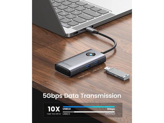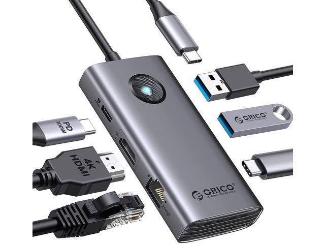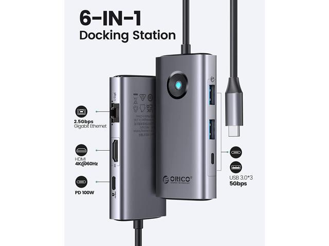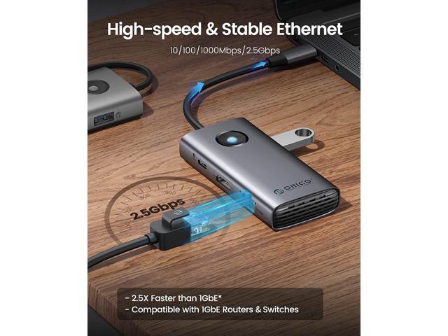 USB C Hub, ORICO 6-in-1 USB C Docking Station USB C to Ethernet 2.5G Adapter with 4K HDMI, PD 100W, 2 USB 3.0 Port, 1 USB C Port 5 Gbps, 2.5G Ethernet Type C Multiport Adapter for Windows Mac(Grey)