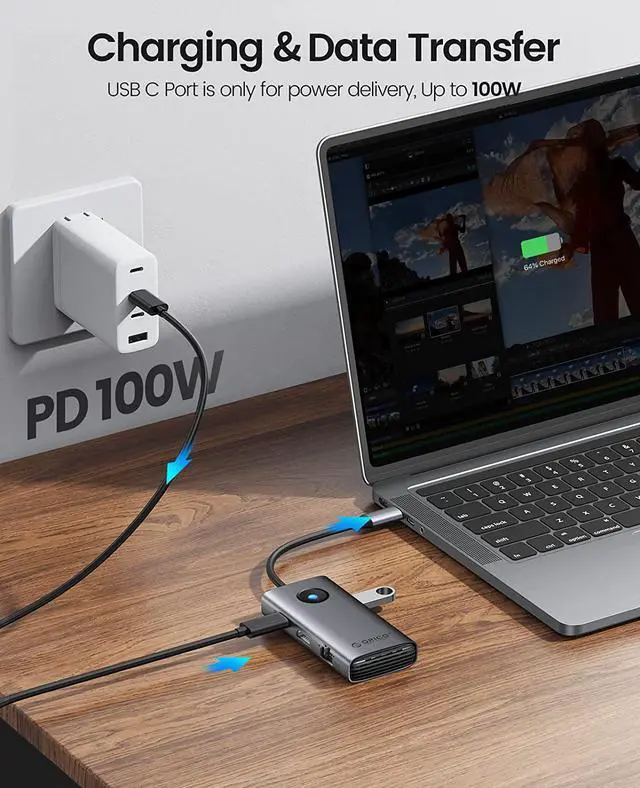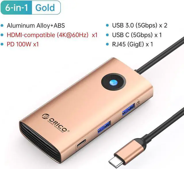 IN 1: type C port into 6 ports, you get 1*4K HDMI, 2*USB 3.0 ports, 1* USB C Port USB C Power Delivery Port (Up to 100W), Gigabit Ethernet (1Gbps).