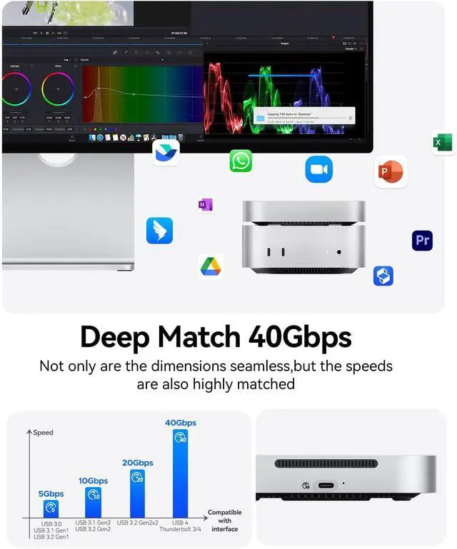 Broad Compatibility Beyond Mac Mini: Not only designed for Mac Mini M4, but Minimate is also compatible with other USB 4.0 devices, providing versatile expansion options for all your storage needs.