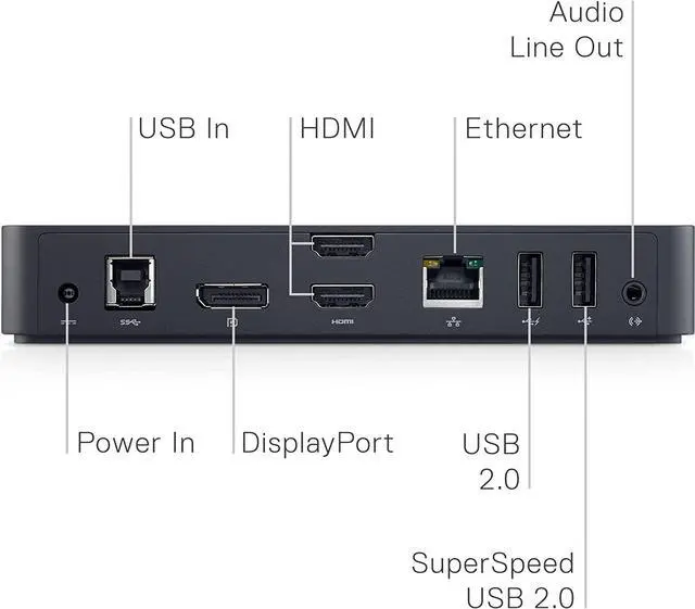 Full HD displays. The Dell Docking Station allows you to spread out your desktop on up to three external displays, increasing productivity and making it easier to manage multiple applications. Compatible with Latitude 3330, Latitude E6540, Latitude E6440, Precision M3800, Latitude 3340, Inspiron 15 5000 Series (5547), Inspiron 14 5000 Series (5447), Inspiron 15 3000 Series (3542), Inspiron 17 5000 Series (5748), Inspiron 15 3000 Series (3541), Inspiron 14 3000 Series (3442), Inspiron 15R (5545), Inspiron 13 (7347), Inspiron 15 5000 Series (5542), Latitude E5250, Latitude E5450, Latitude E5550, Inspiron 15 7000 Series (7547), Latitude 14 Rugged 5404, Latitude 7350, Inspiron 14 3000 Series (3443), Inspiron 15 3000 Series (3543), Latitude 3450, Latitude E7250, Latitude E7450, Latitude 3550, XPS 13 (9343), Inspiron 14 3000 Series (3451), Inspiron 17 5000 Series (5749), Inspiron 15 5000 Series (5548), Inspiron 7348, Inspiron 17 7000 Series (7548), Inspiron 15 3000 Series (3551), Latitude 3150, Inspiron 15 3000 Series (3558), Inspiron 14 3000 Series (3458), Inspiron 14 5000 Series (5458), Inspiron 5558, Inspiron 5551, Vostro 3558, Vostro 14 (3458), Inspiron 7558, Inspiron 5755, Inspiron 5758, Inspiron 5555, Latitude 3160, Inspiron 3552, Inspiron 14 3000 Series (3452), Inspiron 15 5000 Series (5552), Latitude 3570, Inspiron 14 5000 Series (5459), Inspiron 15 5000 Series (5559), Inspiron 17 5000 Series (5759), Inspiron 11 3000 Series (3153), Inspiron 13 7000 series (7353), Inspiron 13 7000 series (7359), Inspiron 15 7000 Series (7568), Inspiron 11 3000 Series (3158), Inspiron 7559, Vostro 3459, Vostro 3559, XPS 13 (9350), XPS 15 (9550), XPS 12 (9250), Latitude E5470, Latitude E5570, Latitude E7270, Latitude E5270, Inspiron 15 3000 Series (3559), Latitude 3470, Latitude 7275, Latitude E7470, Inspiron 15 5000 Series (5568), Inspiron 13, 7000 Series (7368), Inspiron 15 7000 Series (7569), Inspiron 17 7000 Series (7778), Vostro 3549, Vostro 3449.