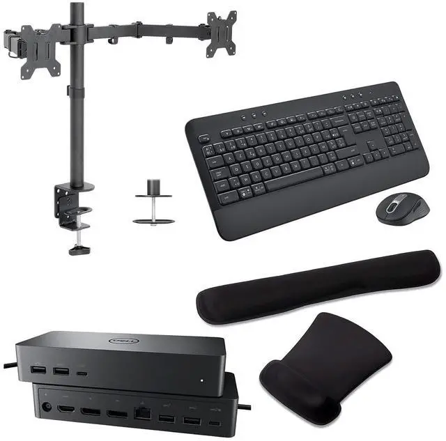 The Dell Universal Dock Bundle with MK650 Wireless Keyboard and Desk Mounted Monitor Stand provides a complete and efficient workstation setup, perfect for both home and office environments. This bundle enhances productivity with seamless connectivity, ergonomic typing, and versatile monitor positioning. Ideal for professionals and remote workers, it ensures a clutter-free, organized workspace.