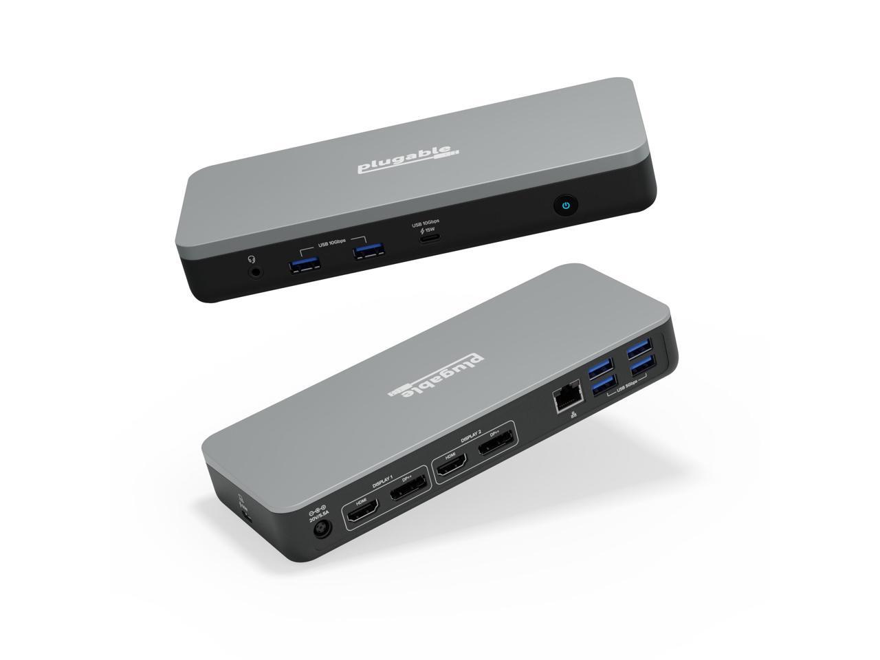 Plugable 12-in-1 Dual 4K USB C Docking Station, Works With Chromebook Certified, 60W Charging Dock, Compatible with ChromeOS and Windows, 2x HDMI, 2x DisplayPort, 1x Ethernet, 1x USB-C, 6x USB, Audio