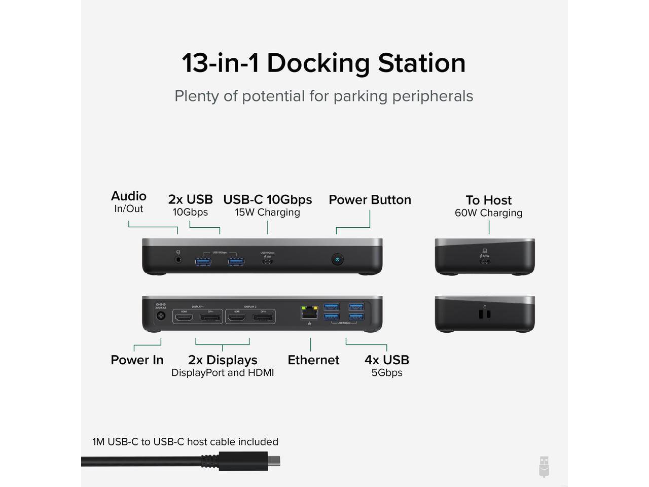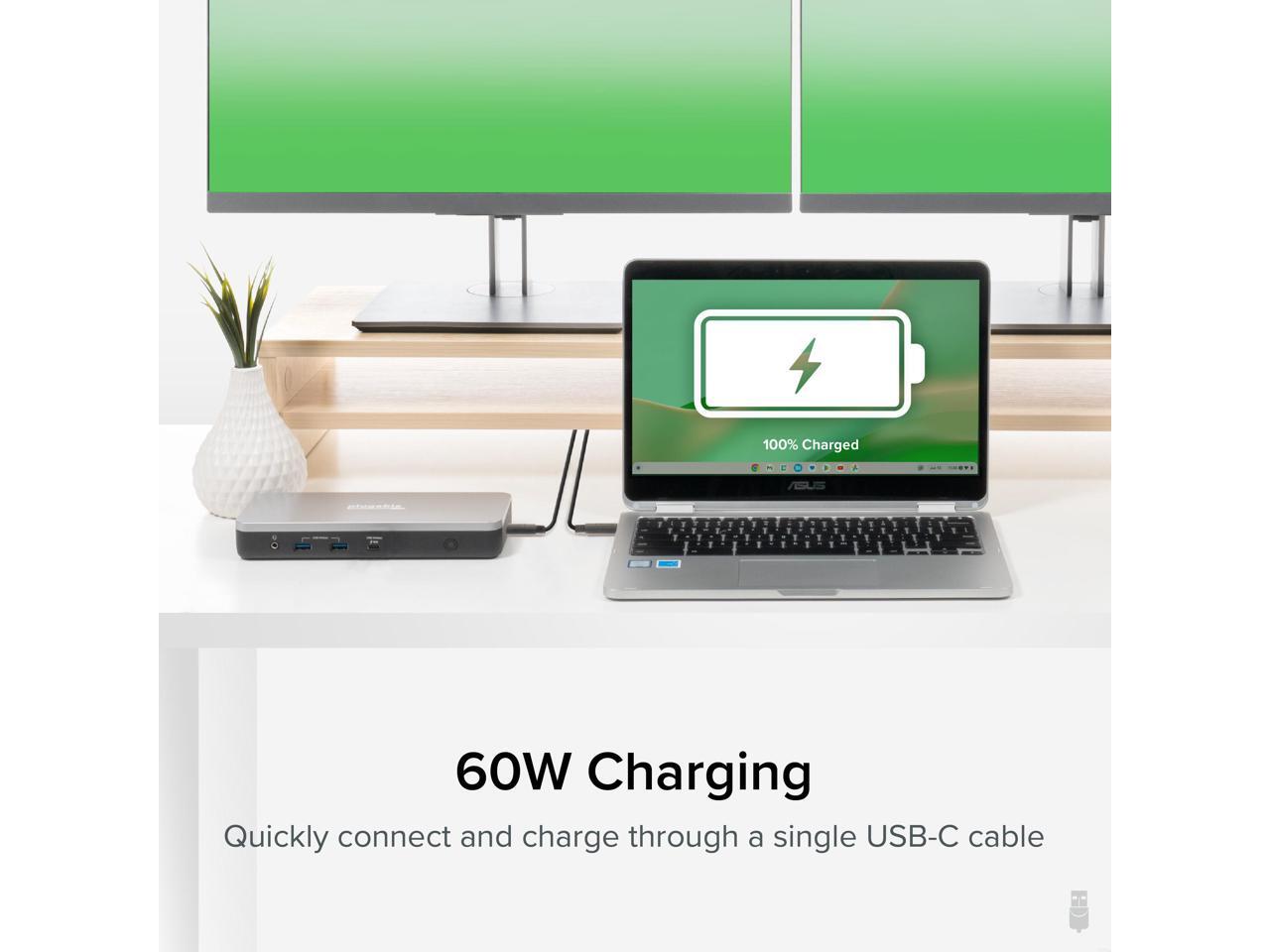 - 60W Charging - Charging dock provides 60W charging to host laptop. And, because this dock is certified to work with Chromebook, you can rest assured the dock will intelligently manage power requirements