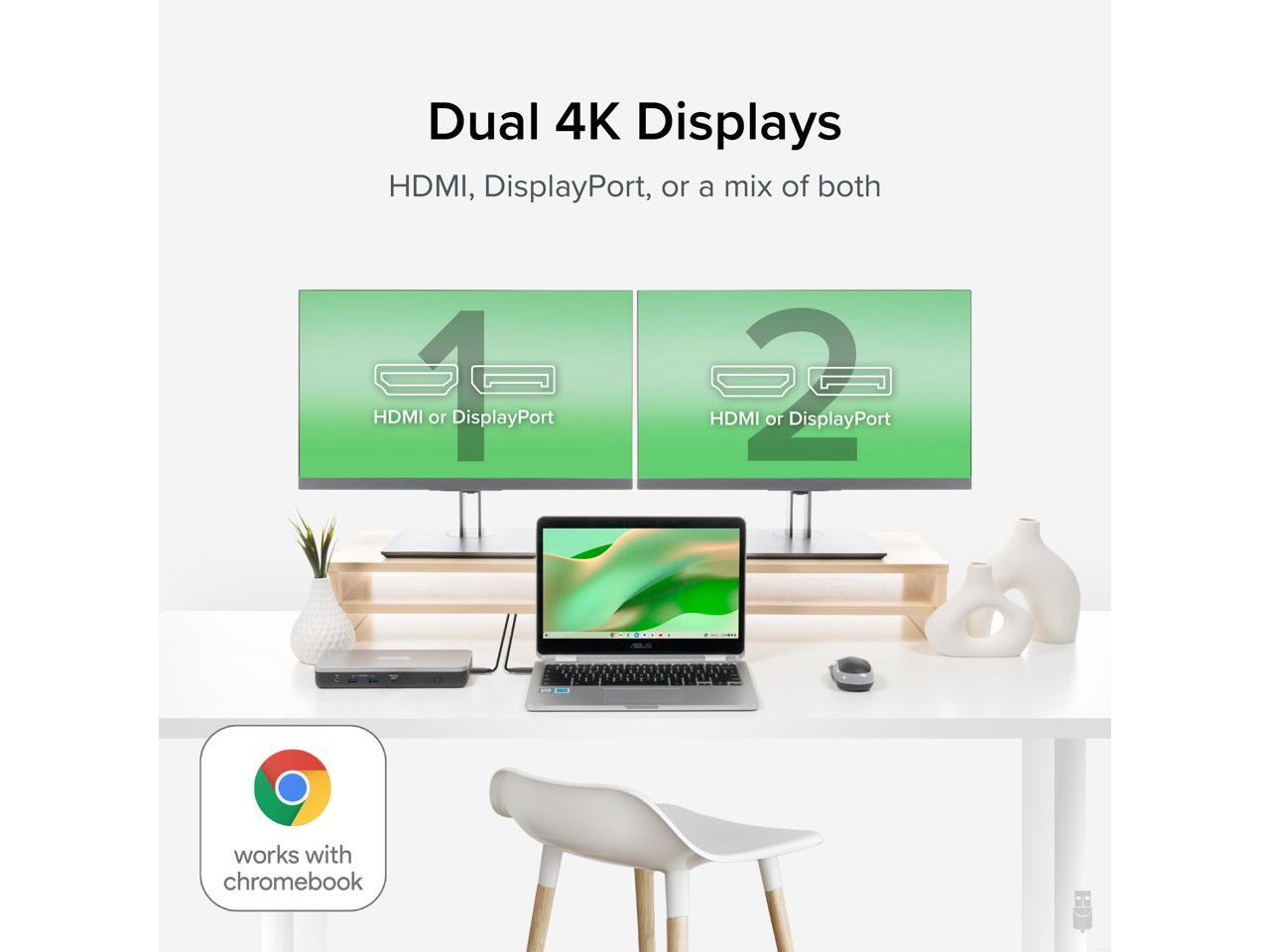 - Dual 4K - Windows and Chromebook docking station dual monitor is supported through 2x HDMI and 2x DisplayPort connections. Users can standardize on one or use a mix of either HDMI or DP to add two screens, each with up to 4K 60Hz resolution