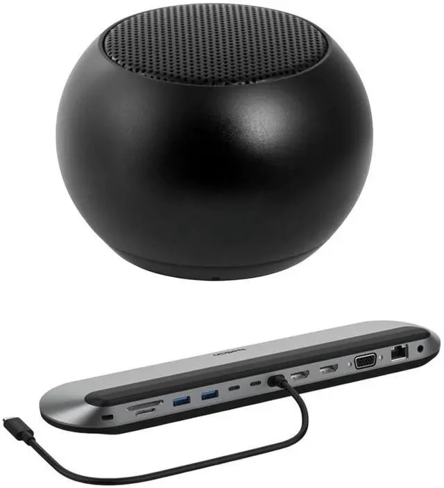 Belkin Universal USB-C 11-in-1 Pro 100W Dock, Triple 4K Support, HDMI, VGA and USB Hub Bundled With Bluetooth Mini U Speaker with Built-in Mic, 4 Hour Playback