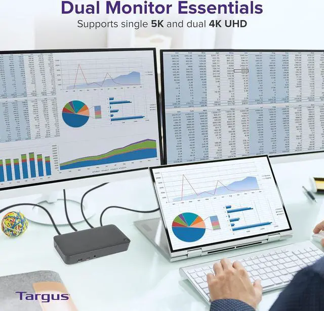 You can be confident our docks will be compatible with your workstation! Not only is it compatible with your workspace, it transforms it. If youre trying to connect to external monitors and peripherals with just your laptop, youll get a mess of wires that clutter your workspace. With Targus docking stations for both Mac and PC computers, your desk becomes composed and organized.