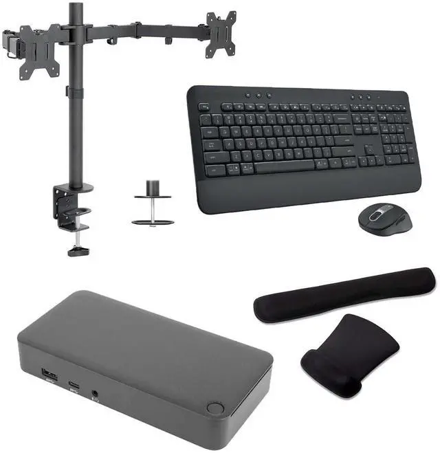 The Targus Dock Bundle with MK650 Wireless Keyboard and Desk Mounted Monitor Stand provides a complete and efficient workstation setup, perfect for both home and office environments. This bundle enhances productivity with seamless connectivity, ergonomic typing, and versatile monitor positioning. Ideal for professionals and remote workers, it ensures a clutter-free, organized workspace with everything needed for a streamlined workflow.