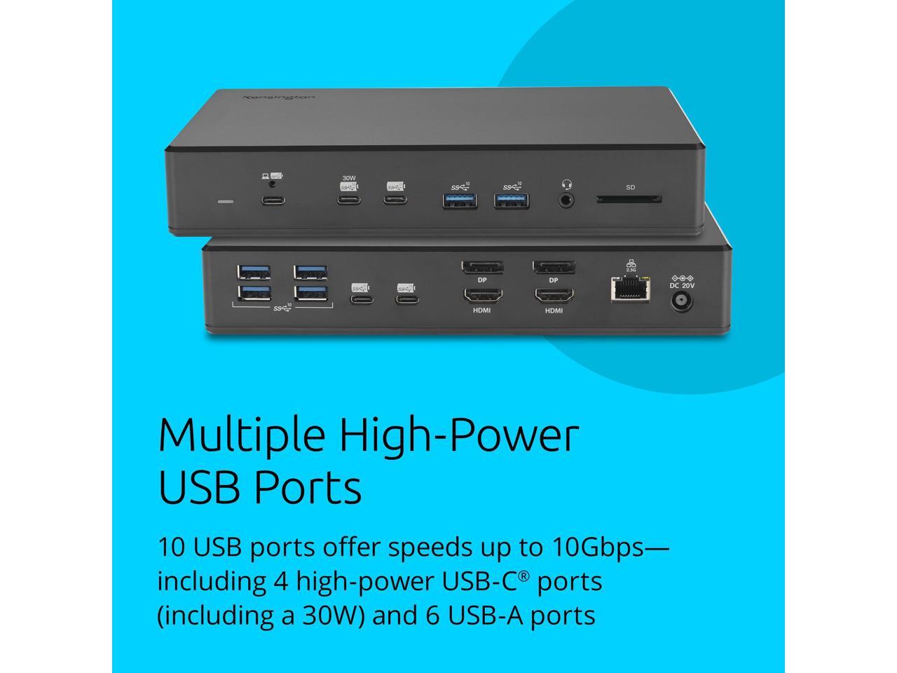 Kensington SD4880P USB-C 4k Quad Monitor Docking Station, 6 x USB-A & 4 x USB-C, 2Gbps Ethernet, 100W PD, Audio Jack, 2xDisplayPort, 2xHDMI, SD Card Reader, for Windows Laptops (K34113NA)