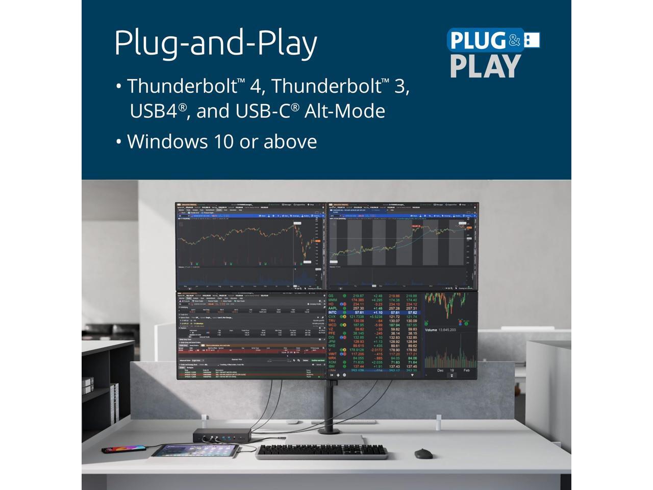 - Plug-and-play for Thunderbolt™ 4, Thunderbolt™ 3, USB4®, and USB-C® Alt-Mode