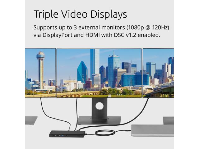 - Supports up to 3 external displays (1080p @ 120Hz) via DP and HDMI®