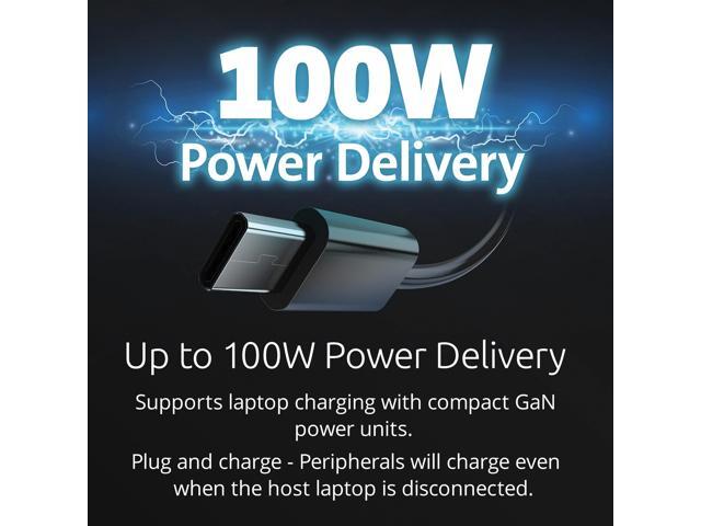 - Up to 100W laptop charging using a compact GaN technology power supply unit