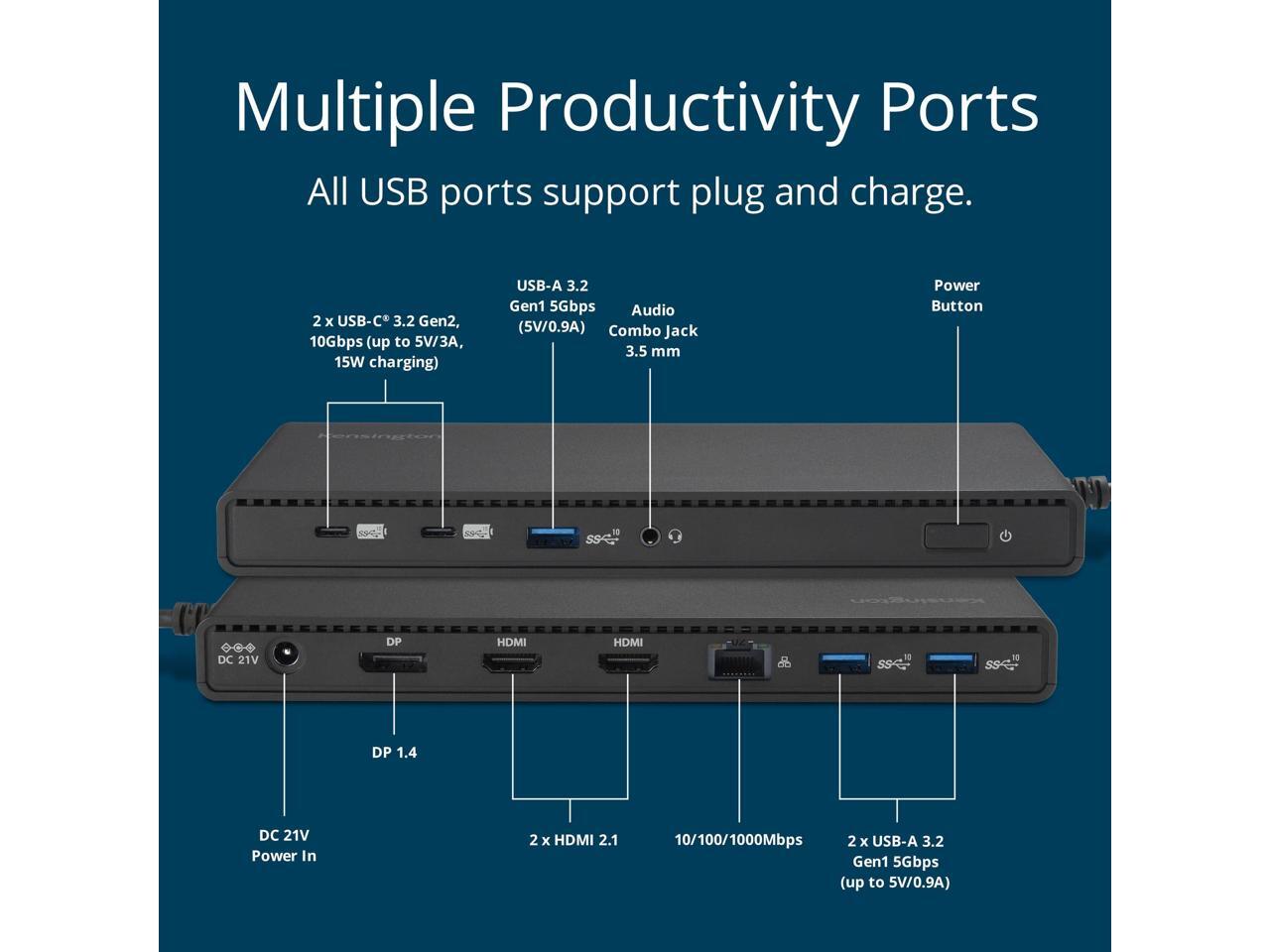 Kensington SD4842P EQ 12-in-1 USB-C Triple Monitor Docking Station vis 2X HDMI & 1x DisplayPort, 100W PD, Ethernet, Audio Jack, Security Lock Slots, for Windows and USB-C Alt-Mode Laptops (K32810NA)