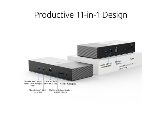 Kensington SD5000T5 EQ Thunderbolt 5 Triple 4K Docking Station with 140W PD - Windows/macOS - for Workstation/Notebook/Monitor - Charging Capability - Memory Card Reader - SD, microSD - Thunderbolt 5