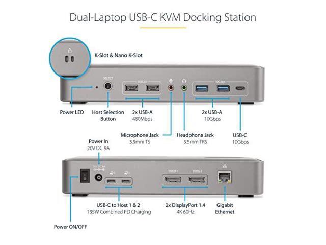 StarTech Dual-Laptop USB-C KVM Docking Station 129NUSBCKVMDOCK