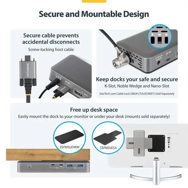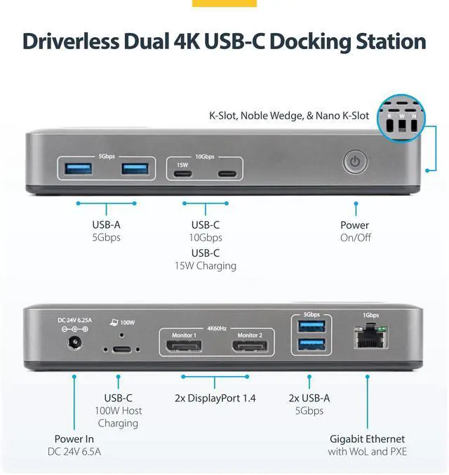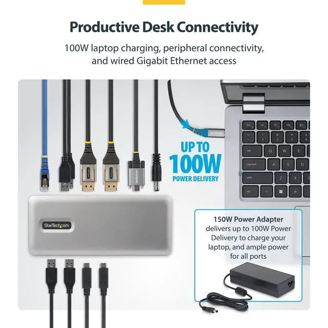 StarTech Dual-Monitor USB-C Docking Station DisplayPort 4K 60Hz 100W Laptop Charging 1GbE Driverless Multi-Monitor Dock 201NUSBCDOCK