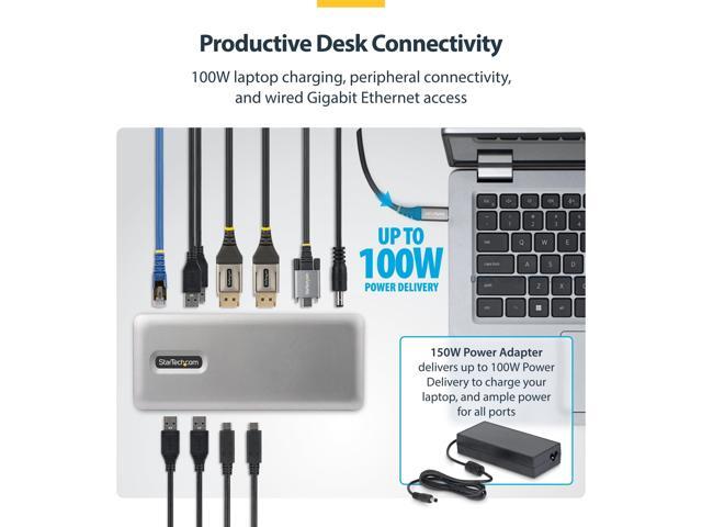 StarTech Dual-Monitor USB-C Docking Station DisplayPort 4K 60Hz 100W Laptop Charging 1GbE Driverless Multi-Monitor Dock 201NUSBCDOCK