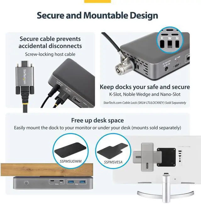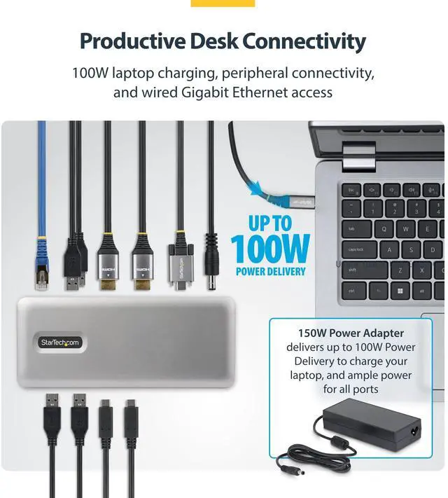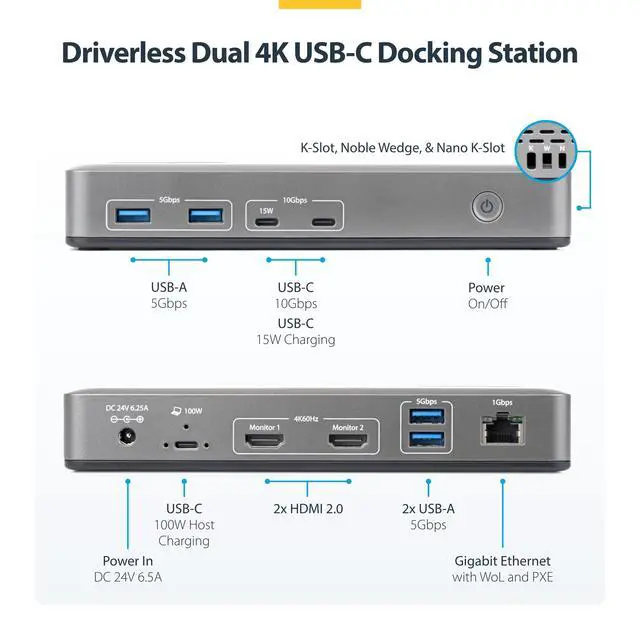 StarTech Dual-Monitor USB-C Docking Station HDMI 4K 60Hz 100W Laptop Charging 1GbE Driverless Multi-Monitor Dock 196NUSBCDOCK