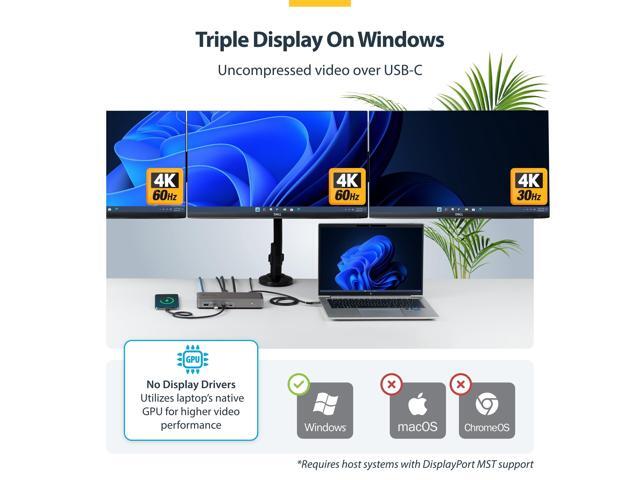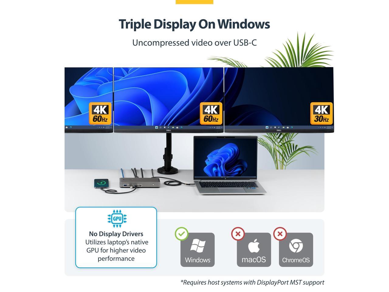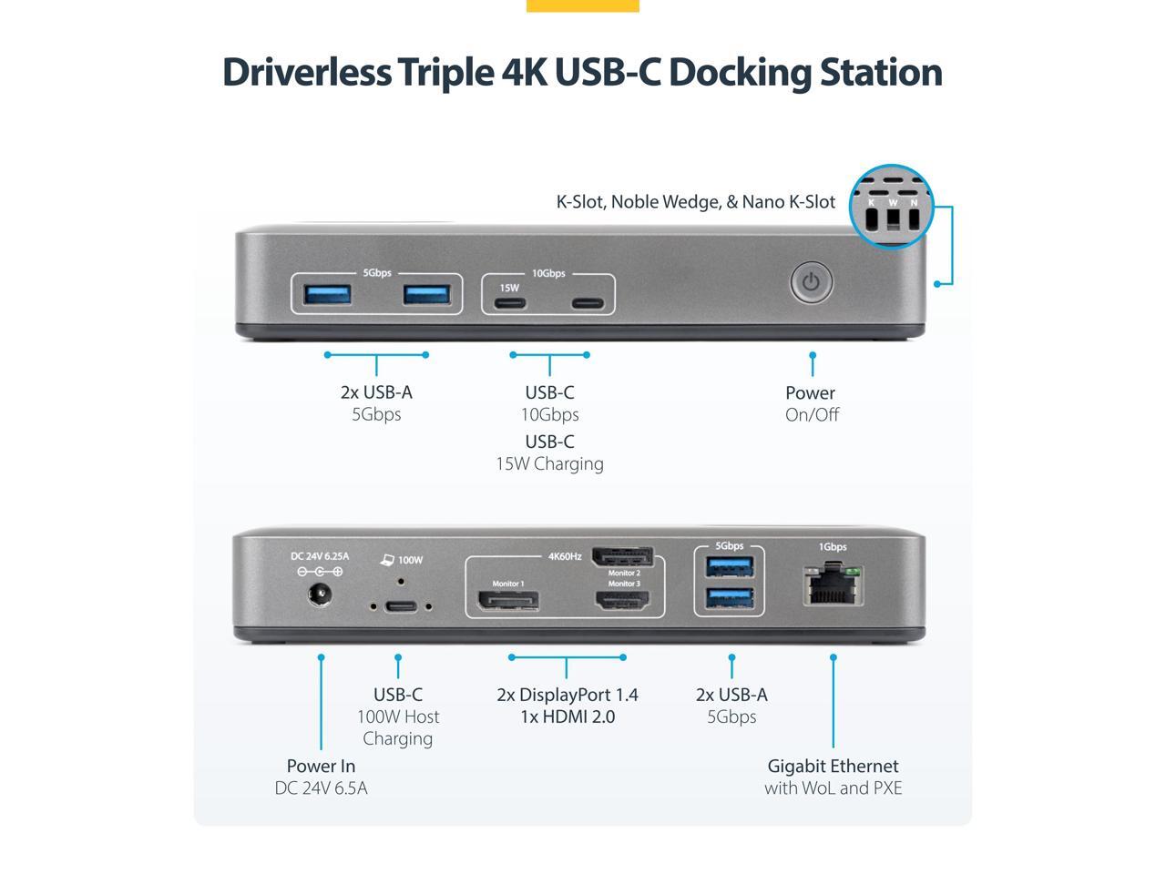 StarTech Triple-Monitor USB-C Docking Station DP / HDMI 4K 60Hz 100W Laptop Charging 1GbE Driverless Multi-Monitor Dock 199NUSBCDOCK