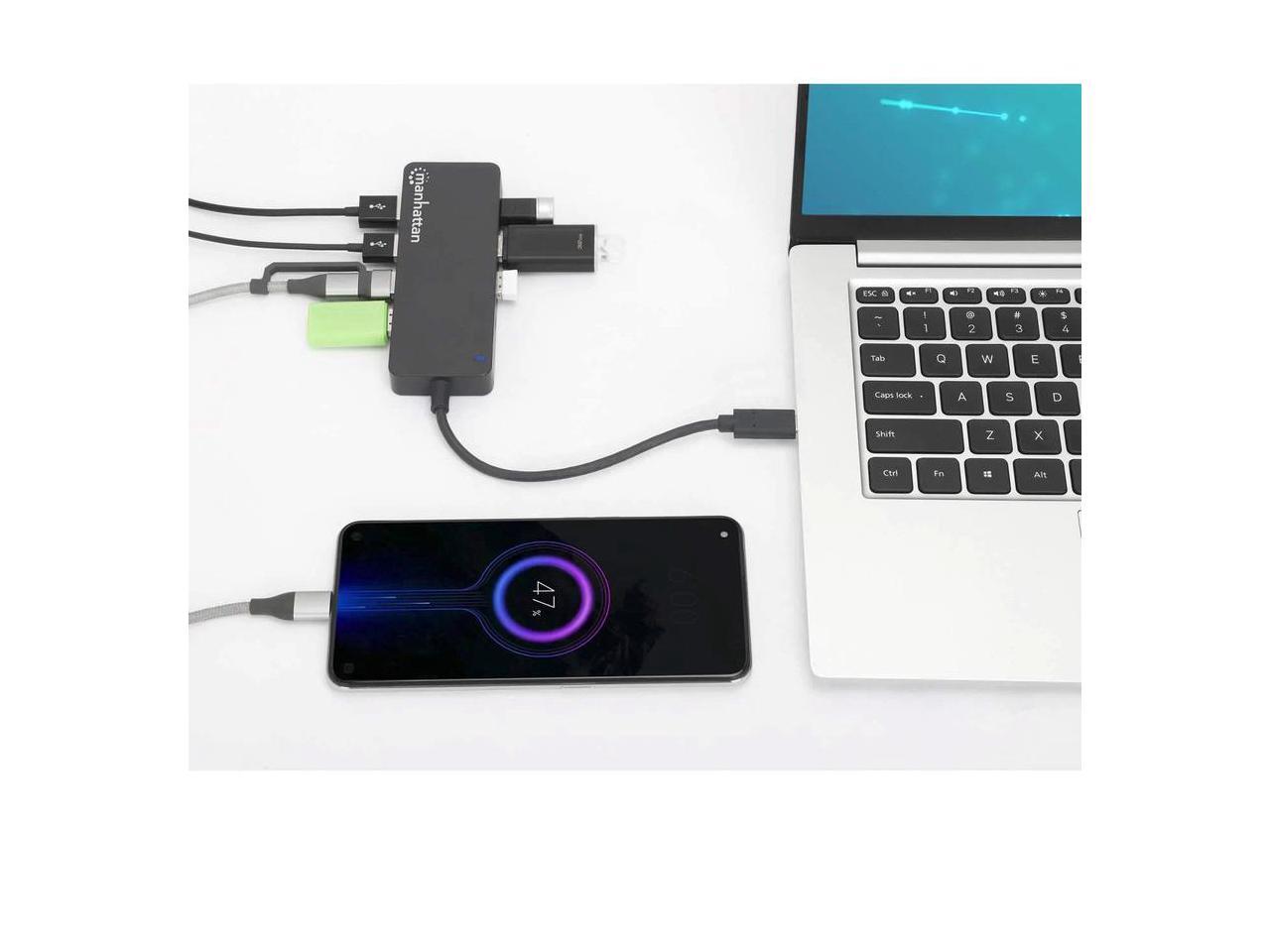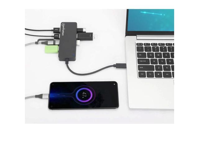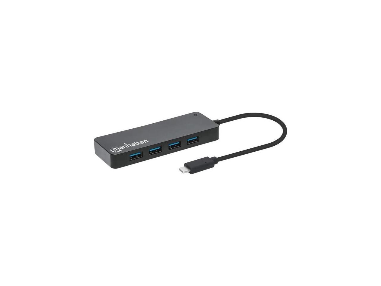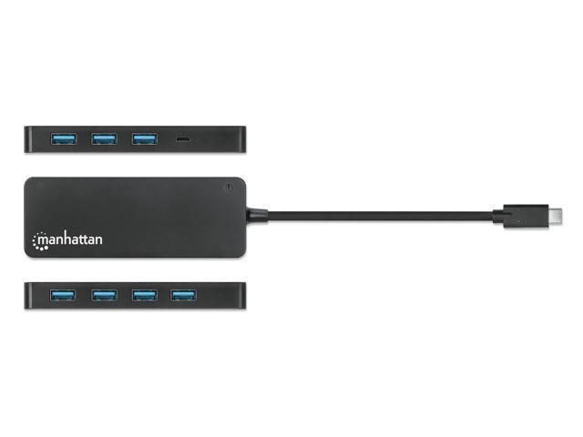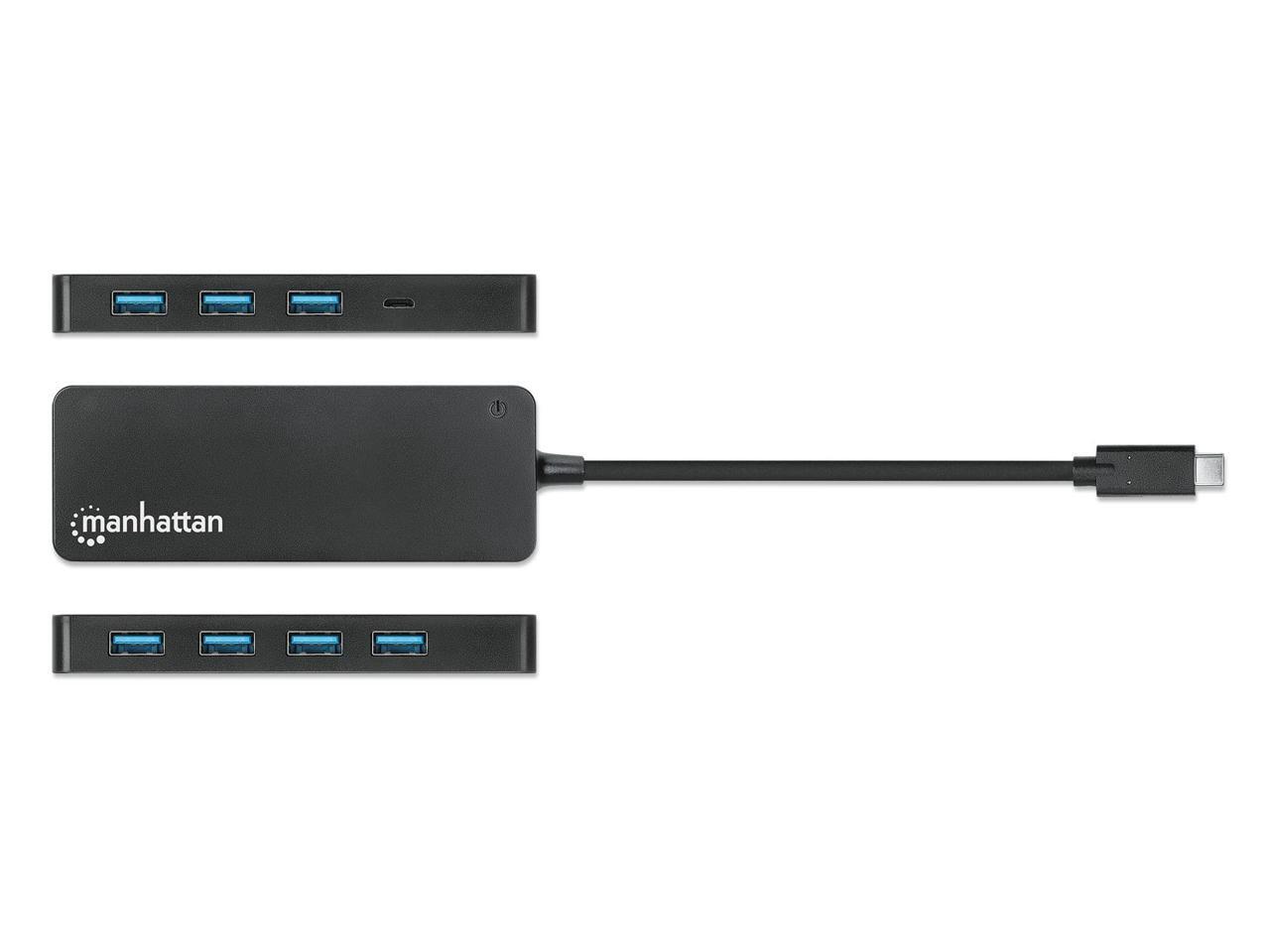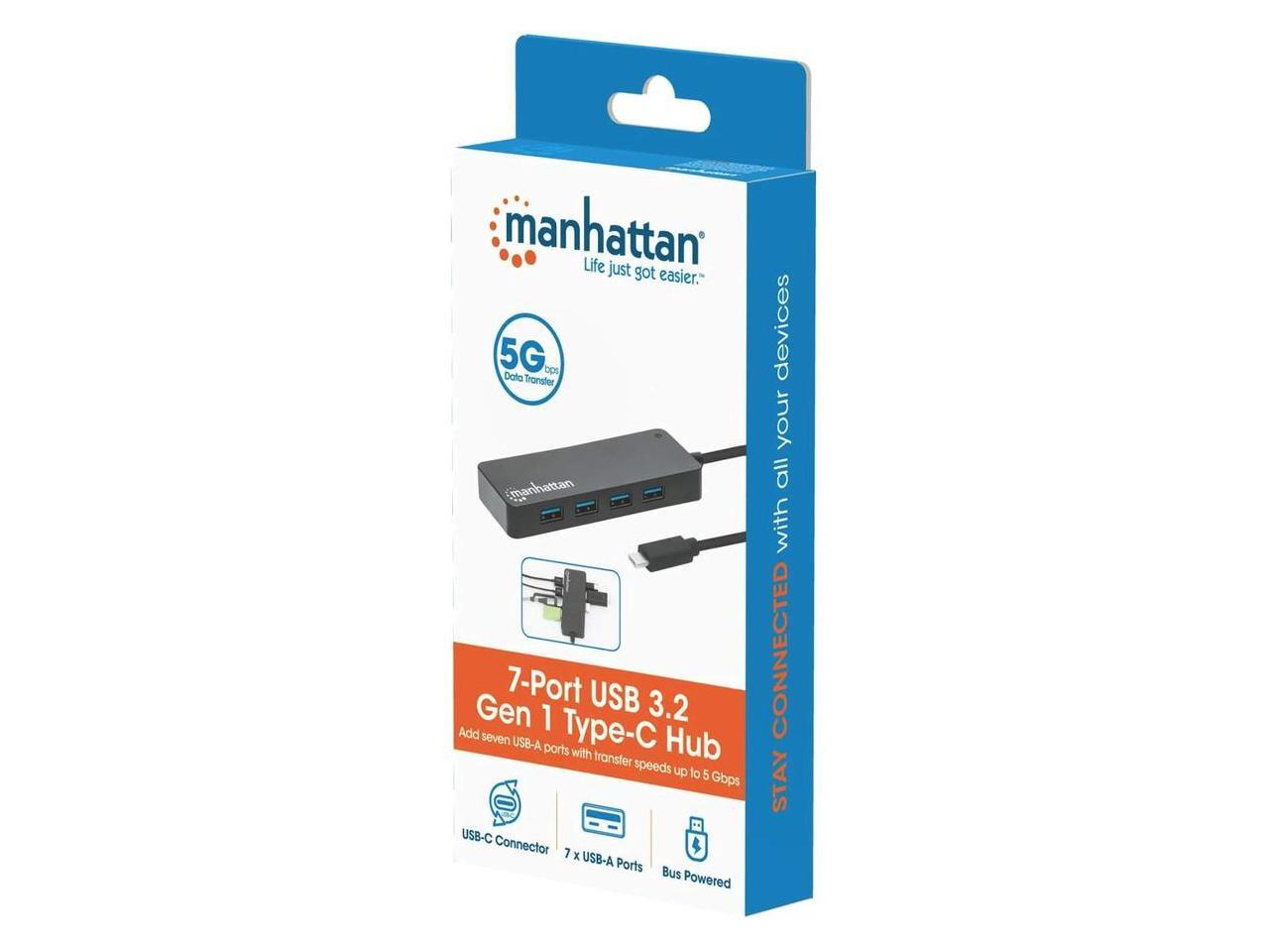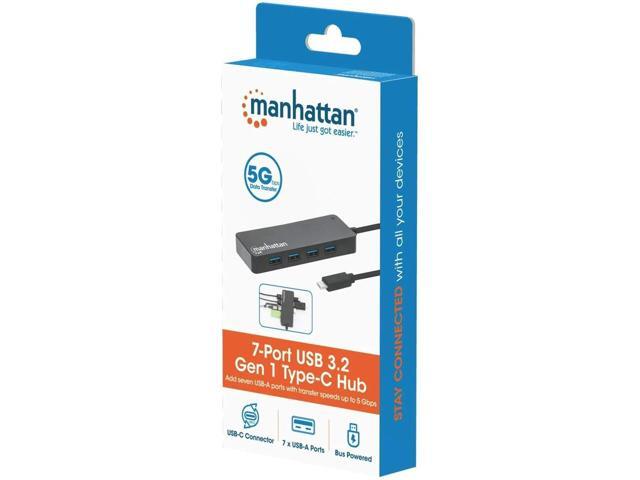 Manhattan 7-Port USB 3.2 Gen 1 Type-C Hub - for Tablet/Notebook/Desktop PC/Keyboard/Mouse/Flash Drive - USB Type C - 7 x USB Type-A Ports - USB Type-A - 1 x USB Type-C Ports - USB Type-C - Black - Wir