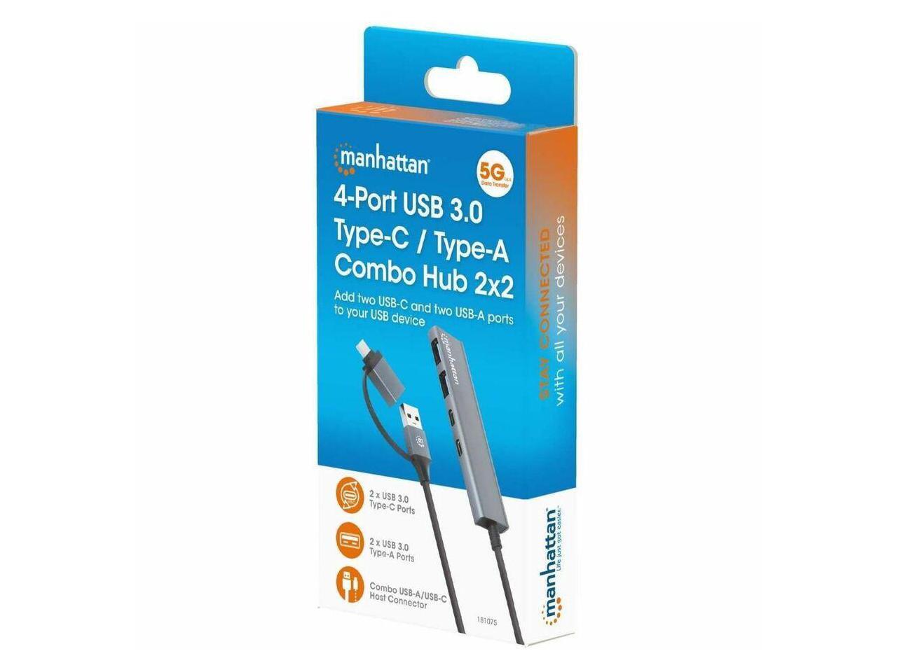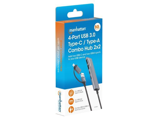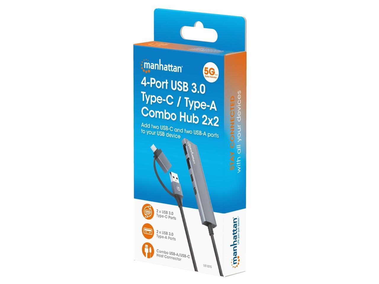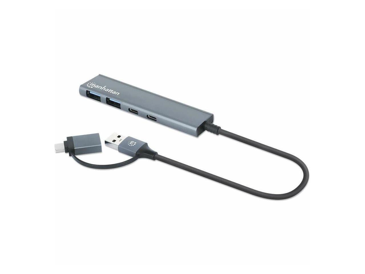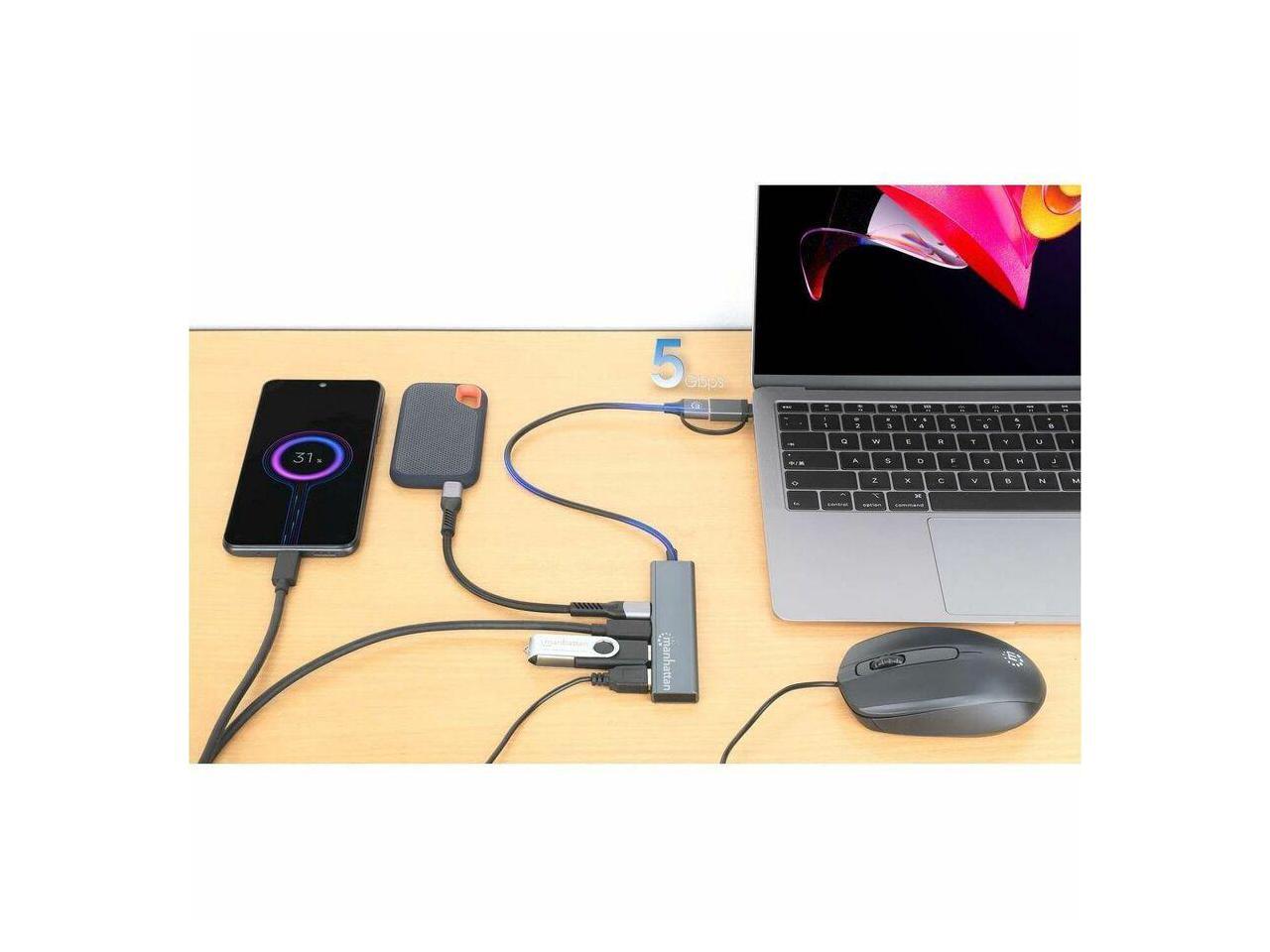 Manhattan 4-Port USB 3.0 Type-C / Type-A Combo Hub 2x2 - USB Type A, USB Type C - 640 MB/s - Notebook, Desktop, Smartphone, Mouse, Keyboard, Flash Drive, Tablet - Portable - 4 USB Port(s) - PC, Mac