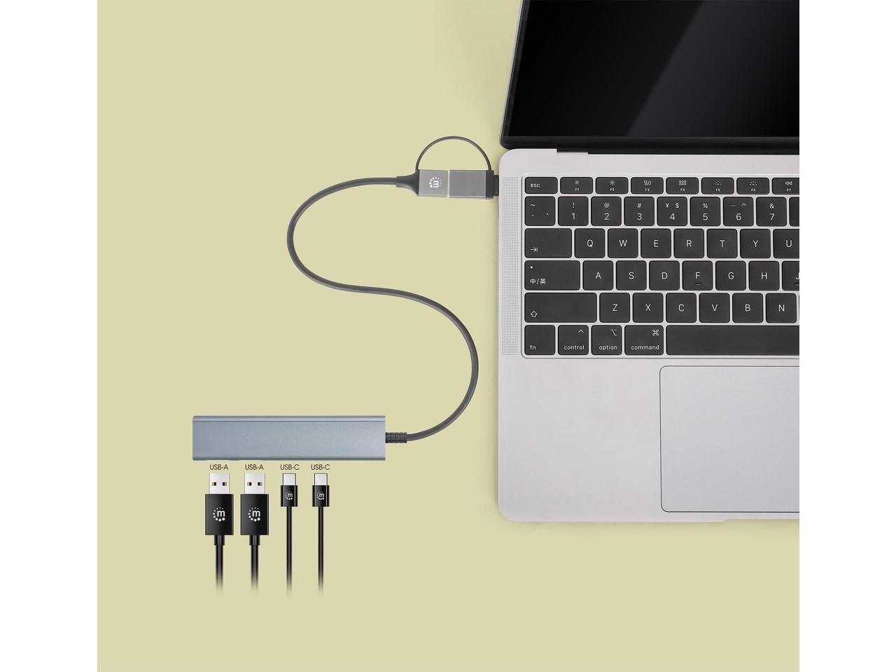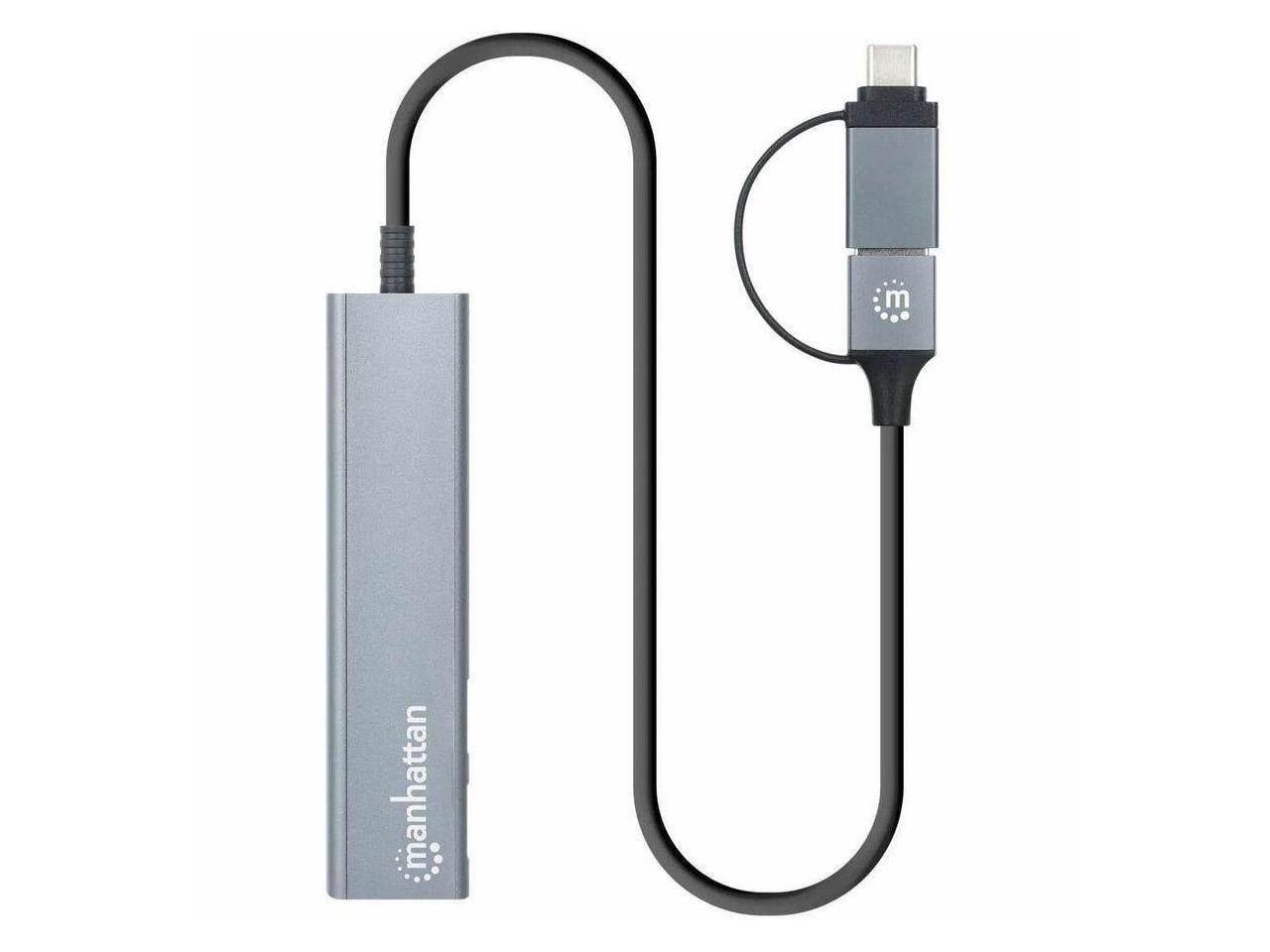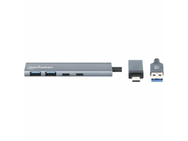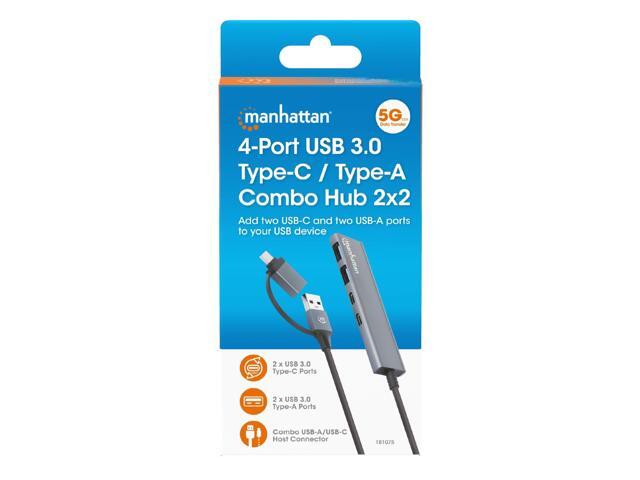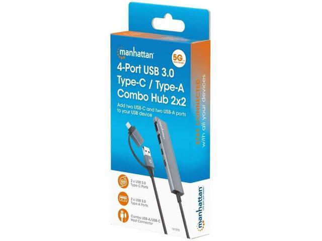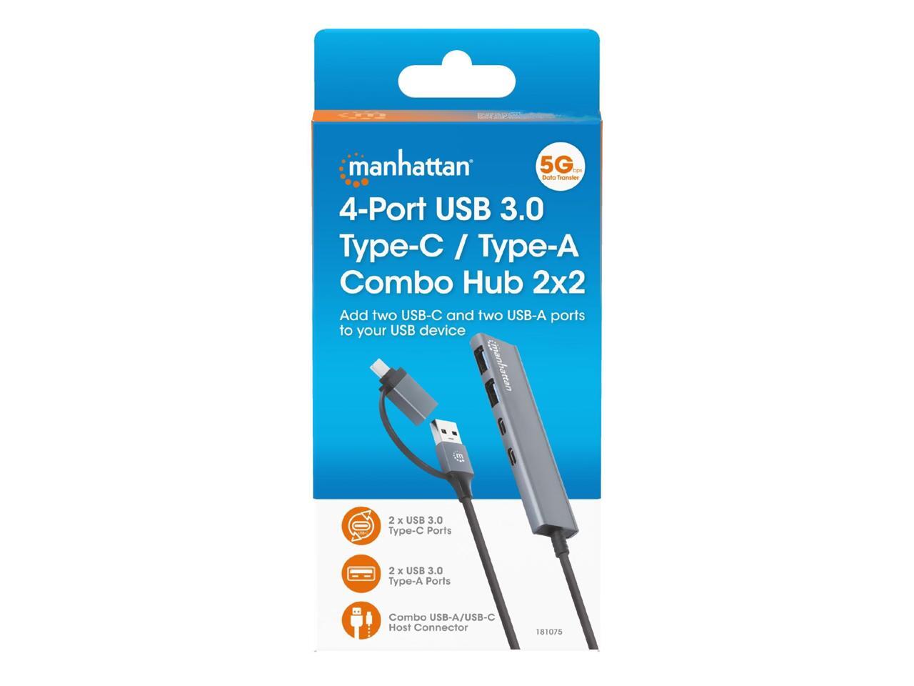 Manhattan 4-Port USB 3.0 Type-C / Type-A Combo Hub 2x2 - USB Type A, USB Type C - 640 MB/s - Notebook, Desktop, Smartphone, Mouse, Keyboard, Flash Drive, Tablet - Portable - 4 USB Port(s) - PC, Mac
