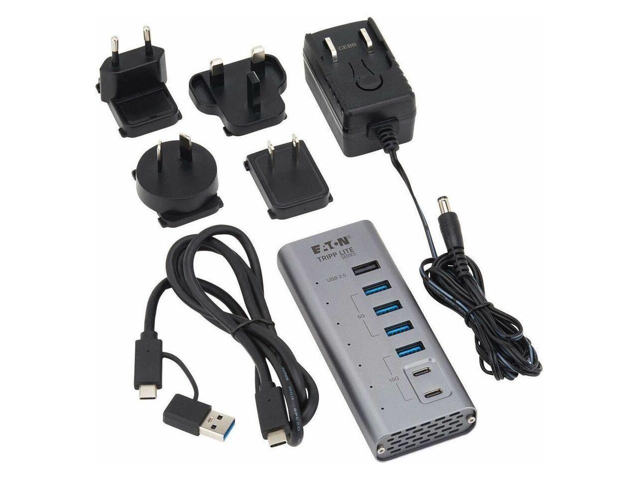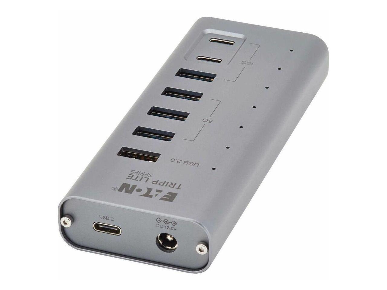 Eaton Tripp Lite Series 7-Port USB-C Hub - USB 3.2 Gen 1 and USB 3.2 Gen 2, 5 USB-A and 2 USB-C Ports, Gray - USB Type C - 640 MB/s, 1.25 GB/s - Desktop, Smartphone, Tablet, Notebook, Headset, Microph