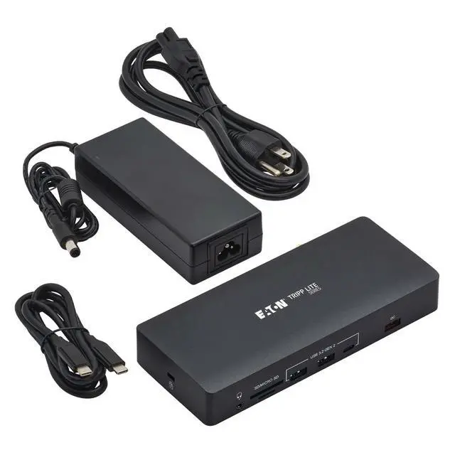 Eaton Tripp Lite USB-C Dock - 100W - 3 Displays Supported - Dual 4K, Triple FHD - 5 x USB Ports - 1 x USB-C - VGA - 1 x RJ-45 Ports - 2 x HDMI - 1 x DisplayPorts - 3.5 mm Audio Jack - SD/MicroSD Reader - Wired