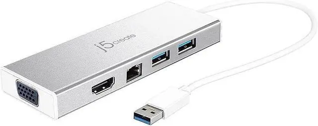 j5create USB 3.0 Hub with HDMI, VGA, RJ45 Gigabit Ethernet, 2 USB 3.1 Type-A Ports - High Speed Data Transfer Adapter for Mac, Windows, Desktop PC - Supports Up to 2K Resolution