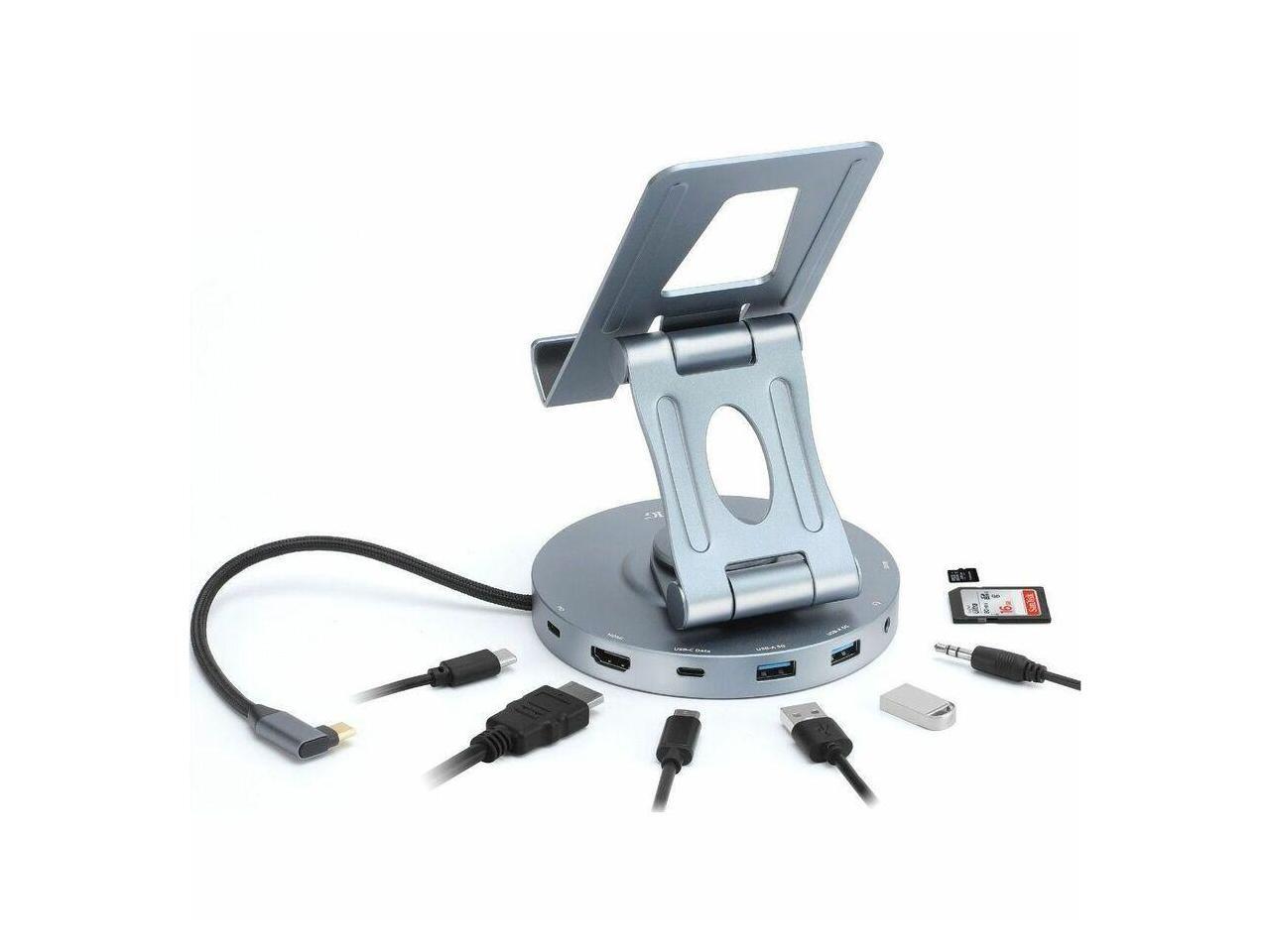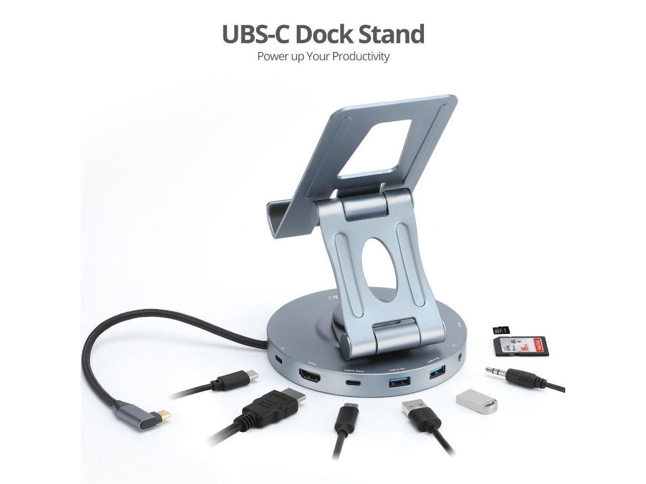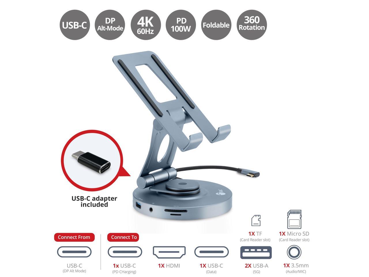 SIIG USB-C Multitask Hub Stand Holder fits under 13" Tablets/Phones - 4K60Hz- PD100W - USB-C Hub Stand Holder fits under 13" Tablets/Phones - USB-C Docking Stand - HDMI 4K@60Hz display - 2x