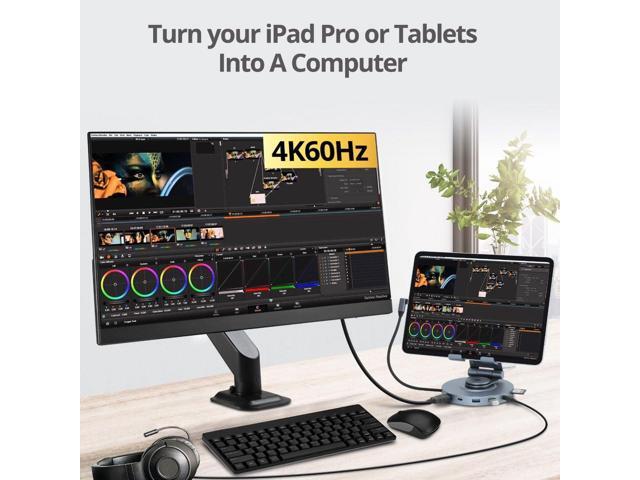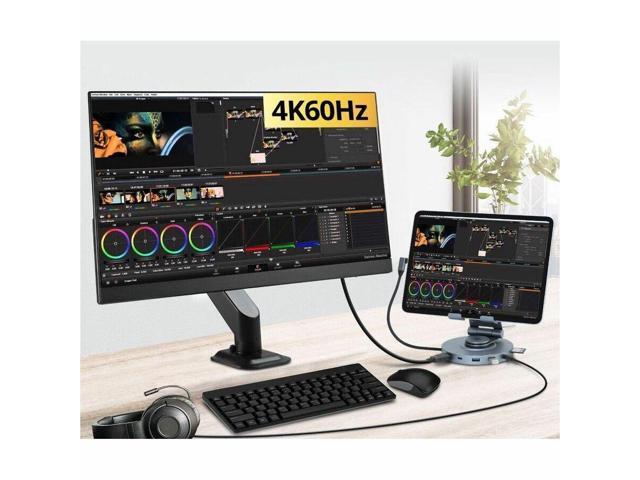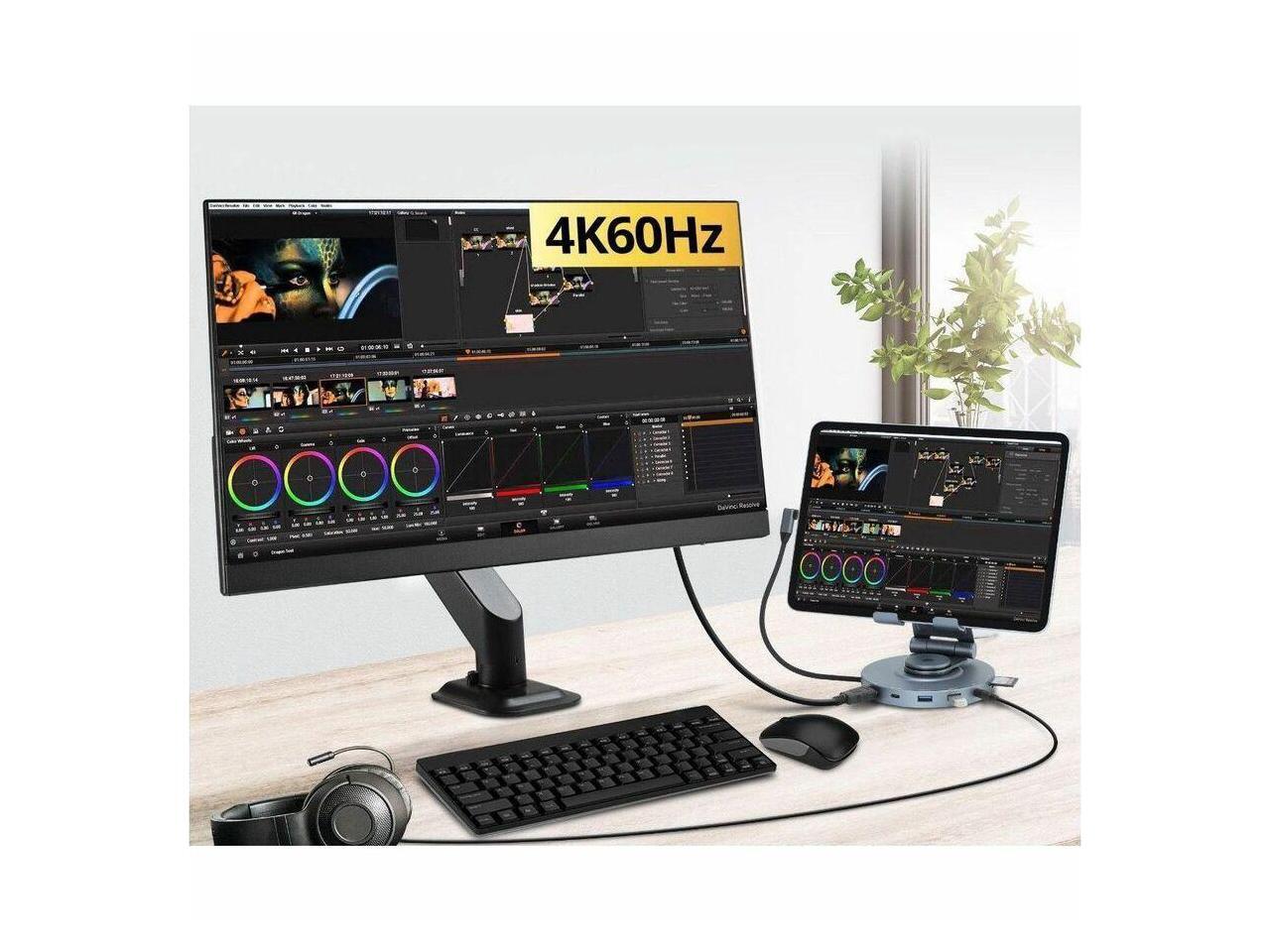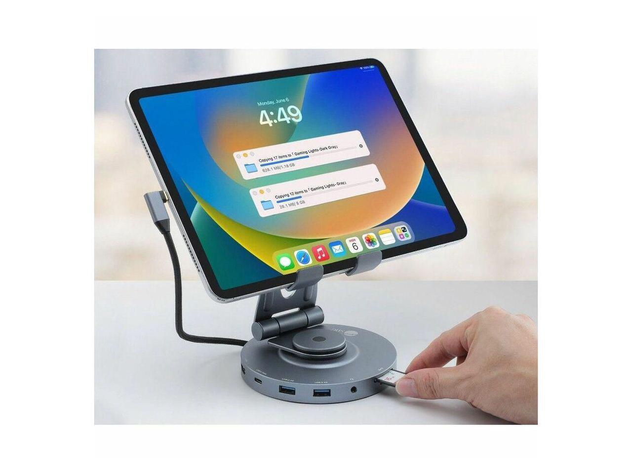 SIIG USB-C Multitask Hub Stand Holder fits under 13" Tablets/Phones - 4K60Hz- PD100W - USB-C Hub Stand Holder fits under 13" Tablets/Phones - USB-C Docking Stand - HDMI 4K@60Hz display - 2x