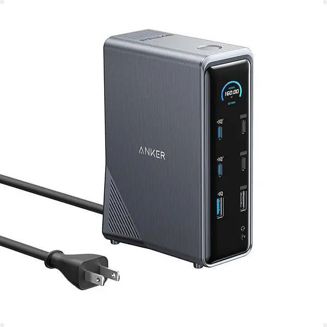 Anker Prime Docking Station, 14-Port with 160W Max Output, 10Gbps Fast Data Transfer, Real-Time Smart Interface, Audio and Ethernet Ports, Dual 4K Displays for Dell, HP, Lenovo and More