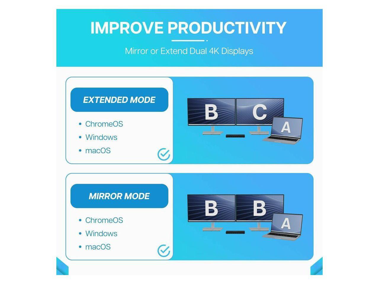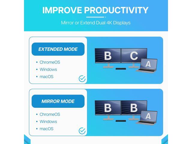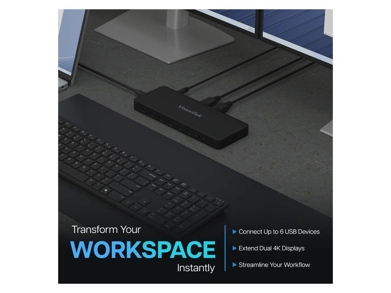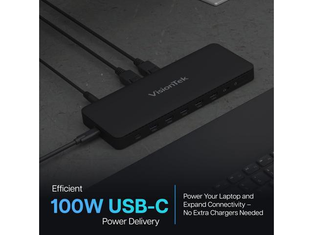 VisionTek VT4600DL Universal Dual 4K Docking Station 100W Charging (USB-A, USB-C) - for Notebook, Laptop, Desktop, Monitor, Mobile Device - Charging Capability - 100 W - USB Type C, USB Type A - 2 Dis