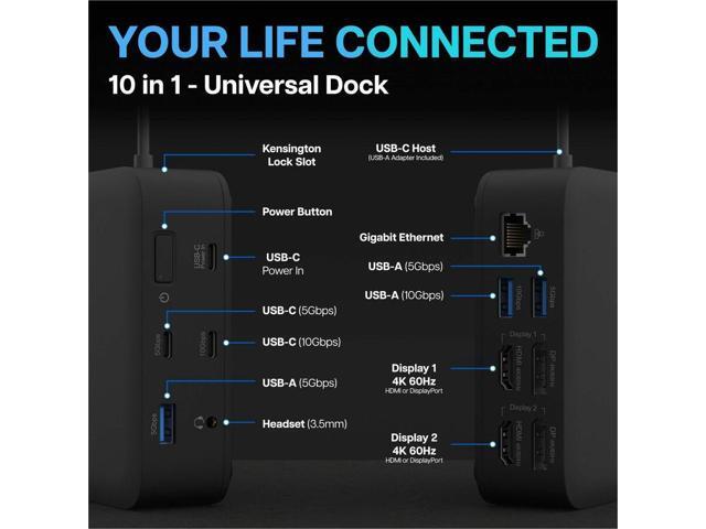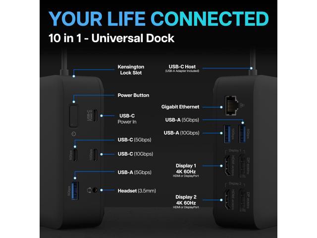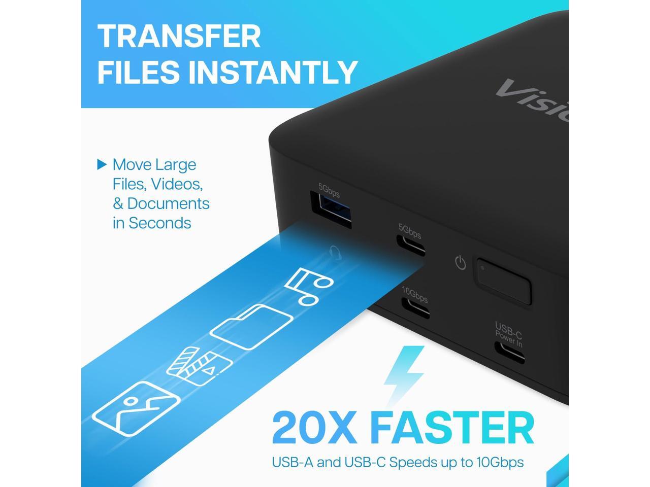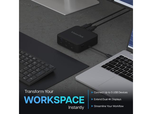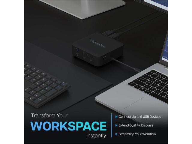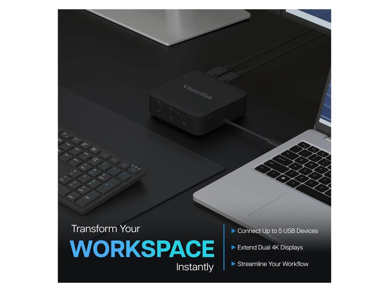 VisionTek VT1200DL Docking Station - for Notebook, Laptop, Desktop - Power Passthrough - USB Type A, USB Type C - 2 Displays Supported - 4K, 4K @ 60Hz, 4K UHD - 3840 x 2160 - 5 x USB Ports - 3 x USB T
