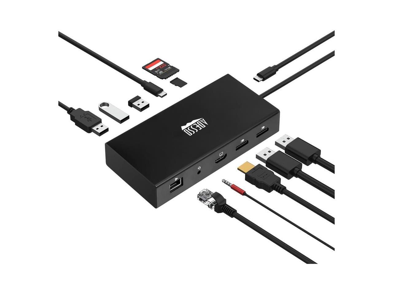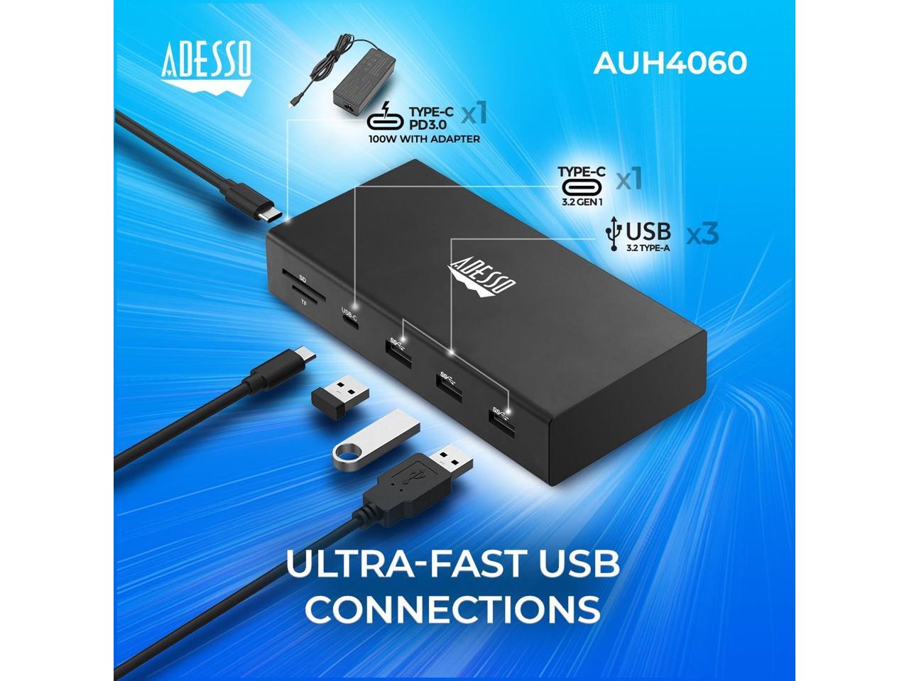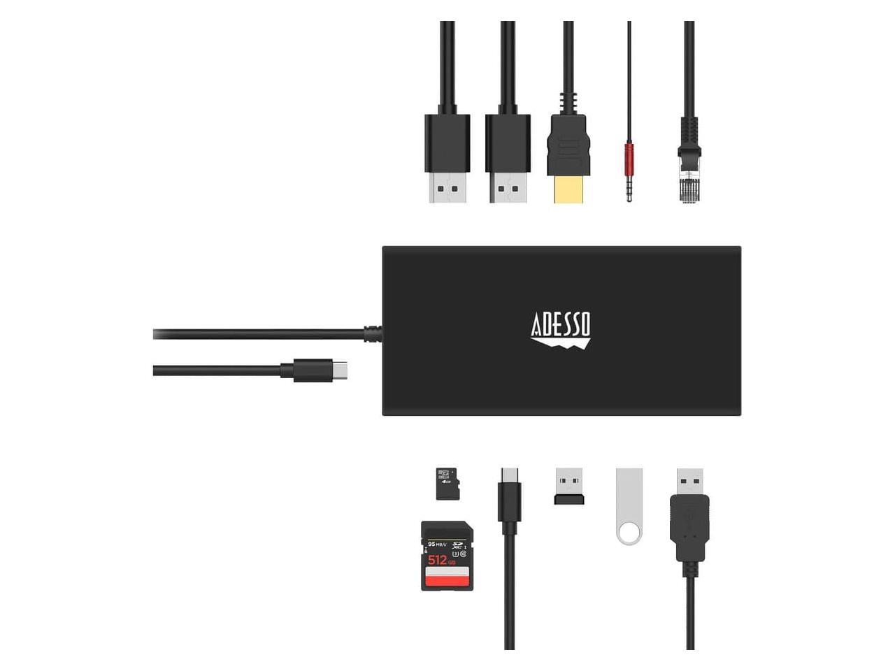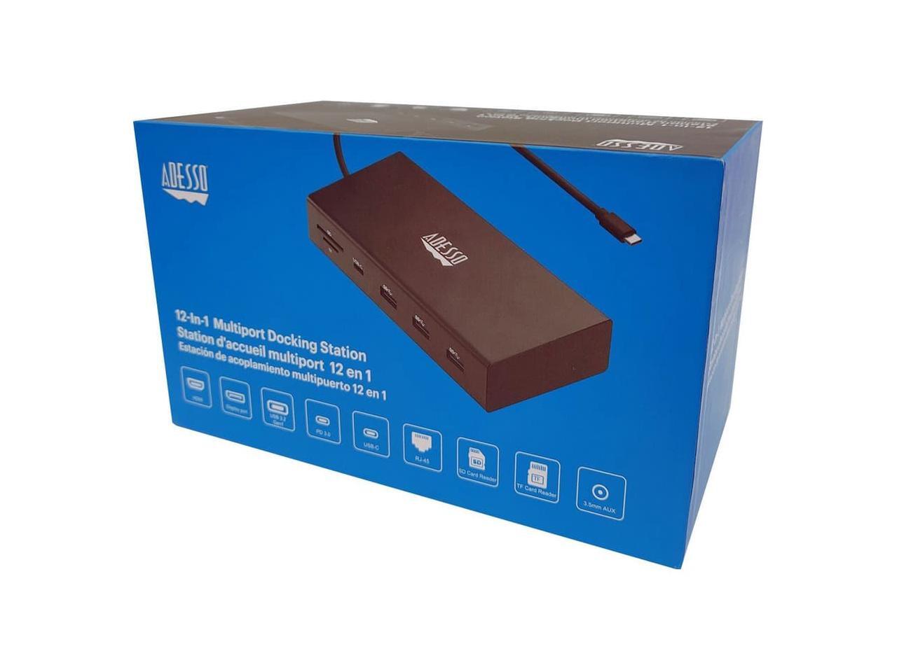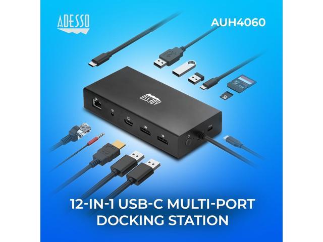 Adesso 12-in-1 USB-C Multi-Port TAA Compliant Docking Station Black AUH4060