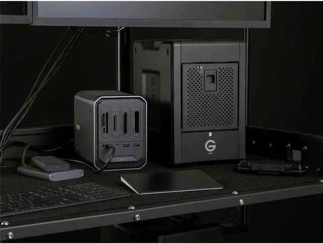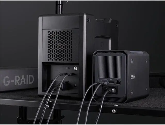 Designed for customization, the PRO-DOCK 4 4-Bay Docking Station can easily attach to a DIT cart or other gear to support your production needs. Whether you're a professional or a tech enthusiast, this reliable docking station is designed to meet your high-speed data transfer and connectivity needs.