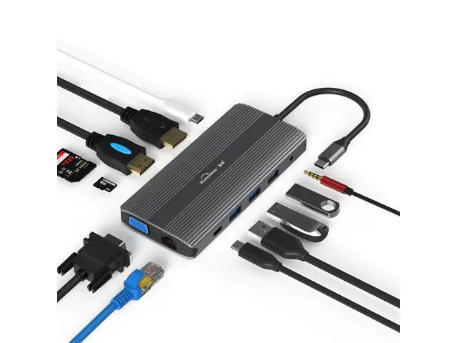 Blueendless USB C Hub HDMI/DP/VGA Ethernet 3 USB Ports PD SD/TF 12 in 1 Docking Station for Type-C Laptops Smart Phone