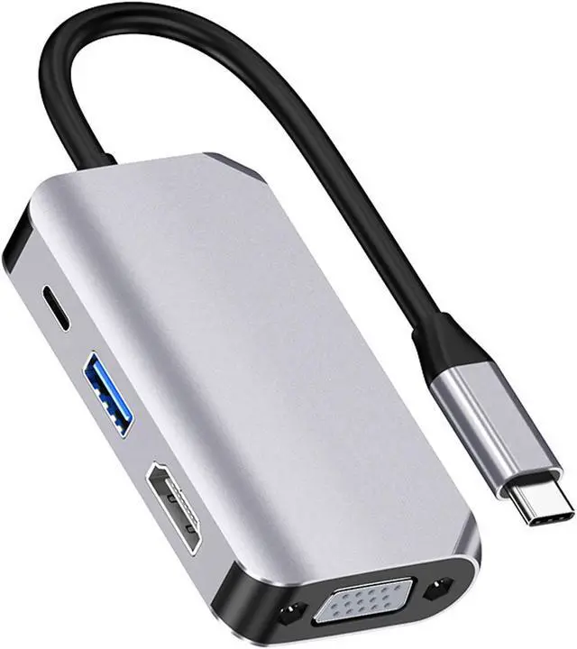 The USB Type C Hub Dongle for Mac Pro,iPad Pro,Mac Air, it has one VGA port, one HDMI port, one USB 3.0 port and one PD Charging port. Thin and sleek precision milled aircraft grade Aluminum alloy casing makes it possible to heat dissipation quickly and makes it easy to travel, gold-plated C-type port to provide you with better signal performance.