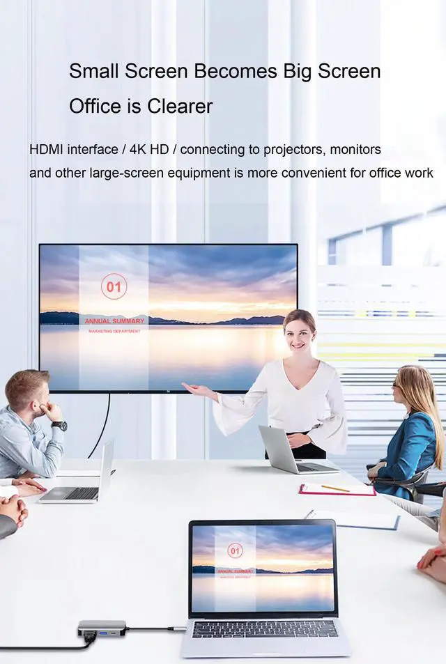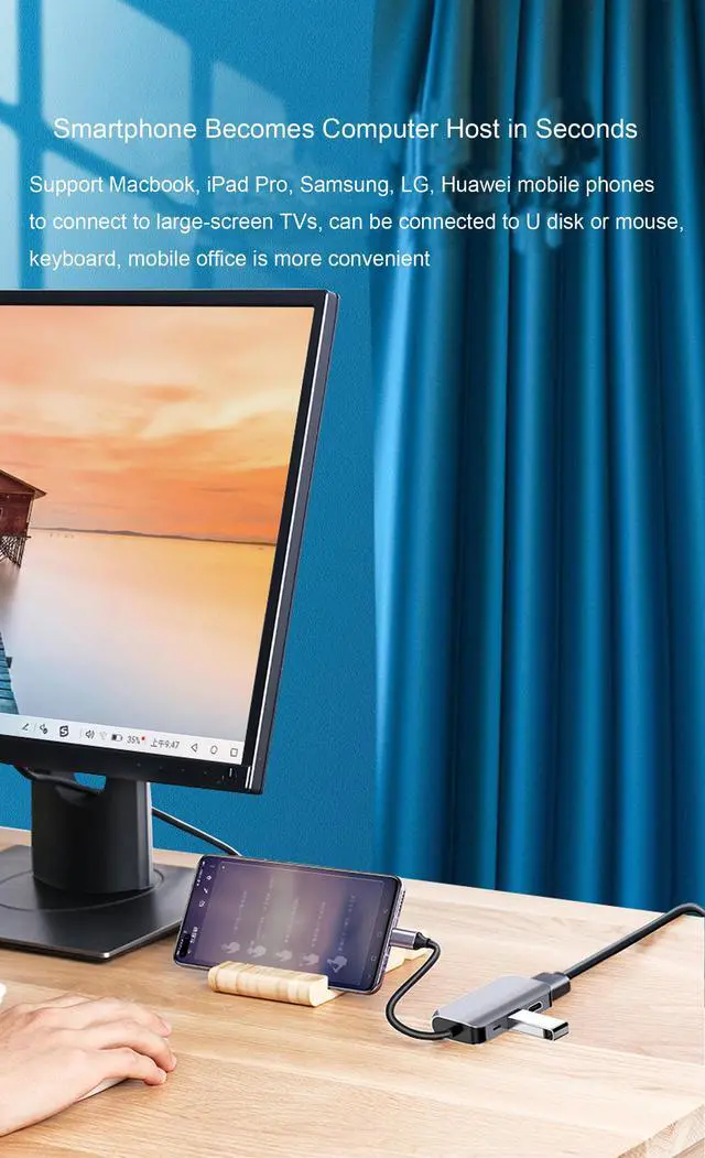 This USB Type C hub equips with a USB3.0 data transfer port, up to 5Gbps rate. Supporting you access phones, USB devices or laptops with USB-C cable quickly.