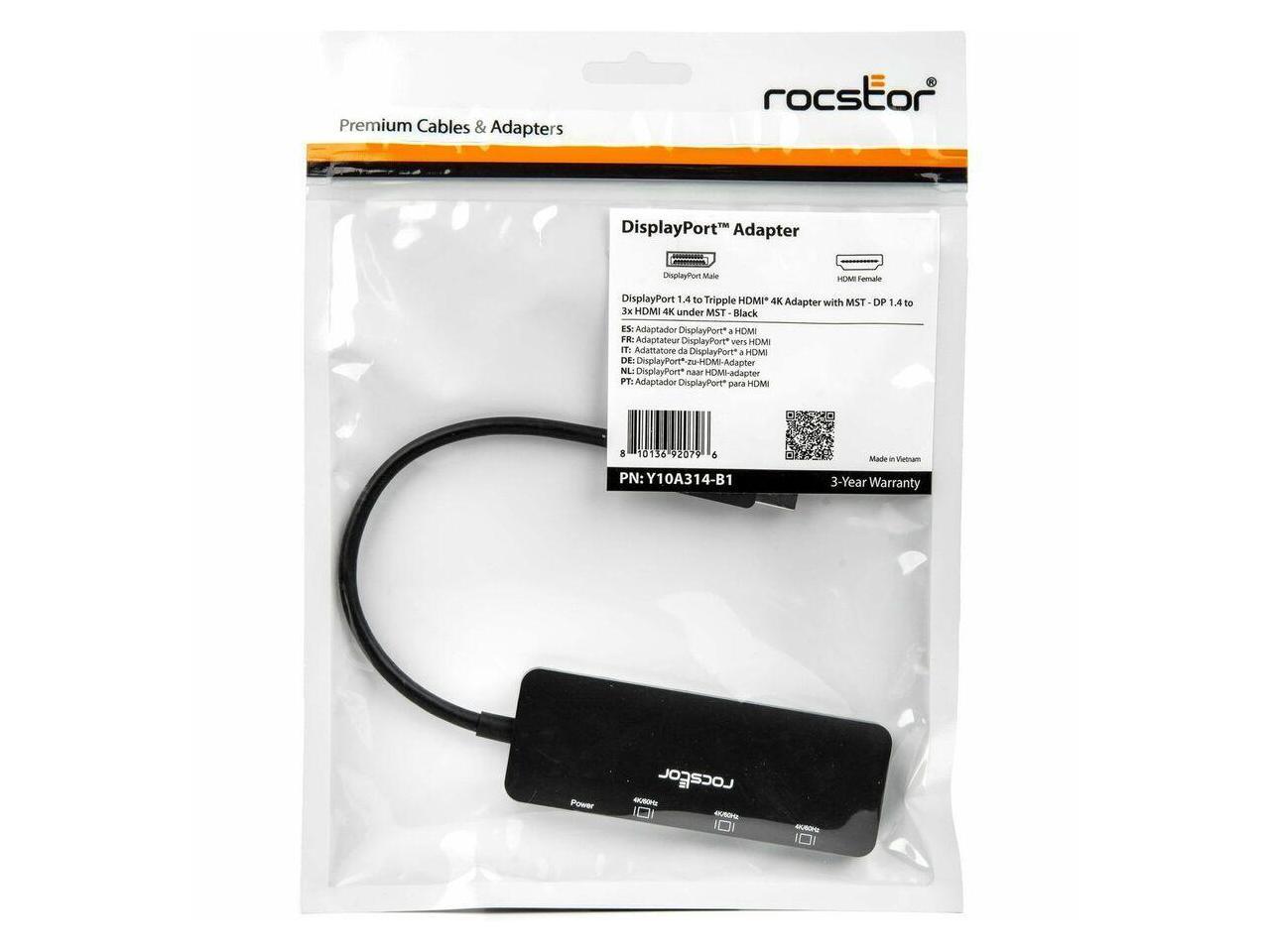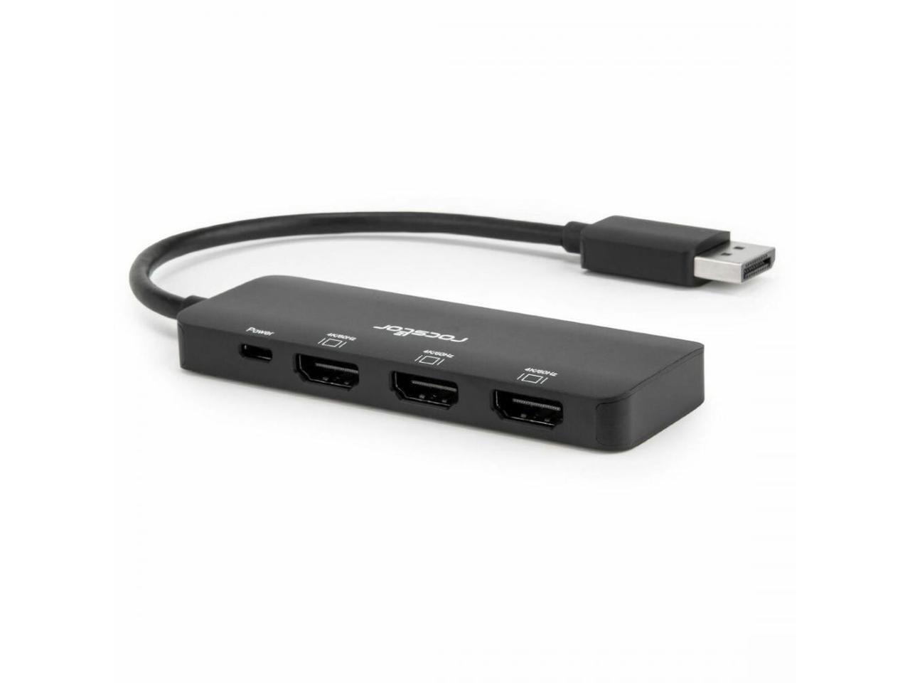 Rocstor Premium DisplayPort 1.4 to Tripple HDMI 4K Adapter - 1 x DisplayPort 1.4 Digital Audio/Video - Male - 3 x HDMI Digital Audio/Video - Female, 1 x Powered Micro USB - Female - 3840 x 2160 Suppor