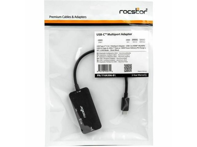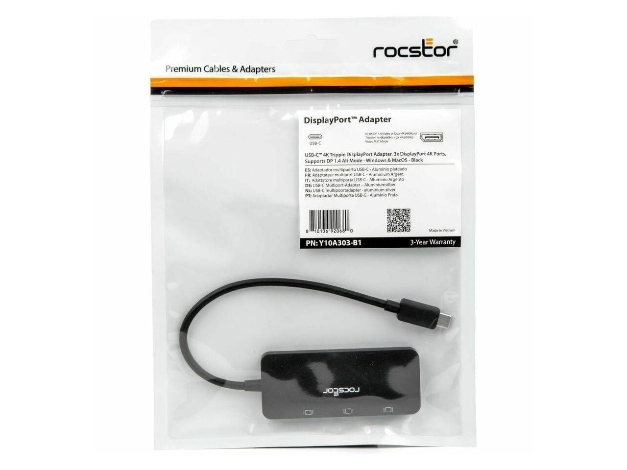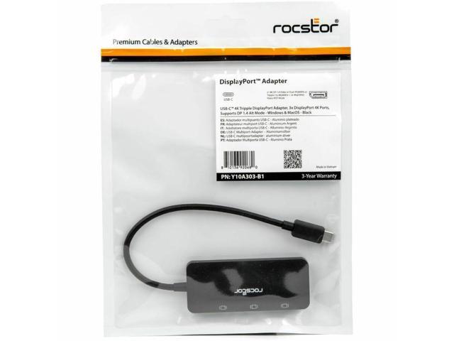 Rocstor Type-C to Triple DisplayPort Adapter with DP1.4 Alt Mode - 1 x USB Type C - Male - 3 x DisplayPort 1.4 Digital Audio/Video - Female - 7680 x 4320 Supported - Black - 1