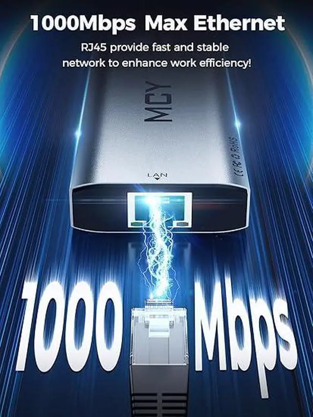 100W PD Pass-Through Fast ChargingThe usb laptop hub has a USB Type C 100WPD charging port, which can quickly charge your laptop/tablet/phone when you use other ports. When the thunderbolt usb c hub is fully loaded, there is no need to worry about the laptop losing power. And when you work or play, you can connect to the 1000Mbps Ethernet port of the powered usb c to ethernet adapter, providing you with a stable and fast network, ensuring efficient and fast work and ultra fast internet experience.