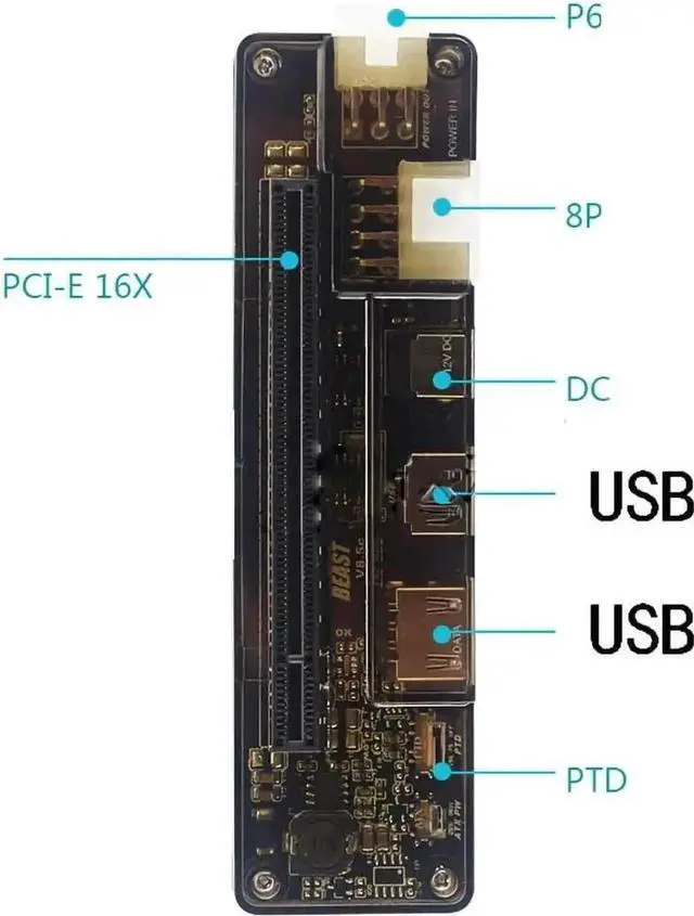 With 6pin interface for connecting graphics card power supply; 8pin interface for connecting EXP GDC power supply.