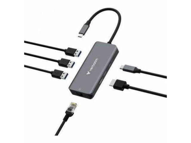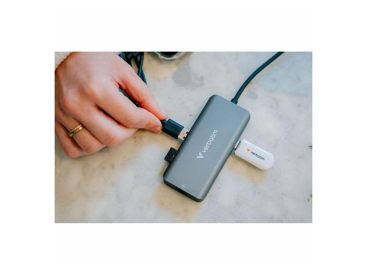 Verbatim USB-C Essentials Multiport Hub- 6 Ports - Charging Capability - USB Type C - 4K @30Hz - 3840 x 2160 - 4 x USB Ports - 3 x USB Type-A Ports - USB Type-A - 1 x USB Type-C Ports - USB Type-C - 1