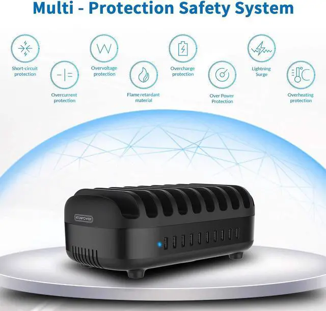 [Certified Safety]: NTONPOWER ipad docking station comes with UL listed, CE, FCC, RoHS Certified. Each charging station is equipped with NTONPOWER' s Multi-Protection safety system which ensures complete protection against over-charging, over-heating, over-voltage and short-circuiting. Built-in surge protection keeps your devices safe.