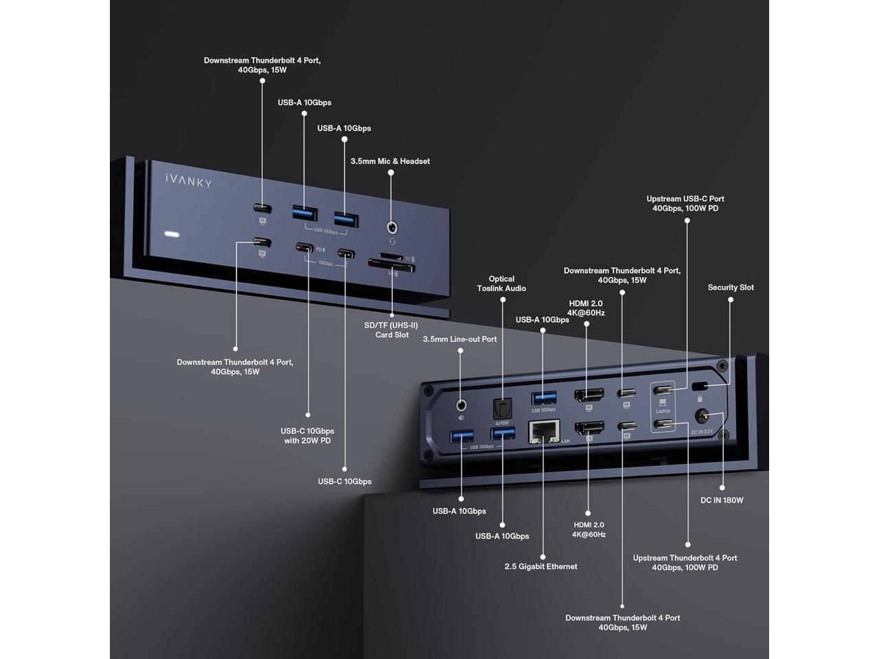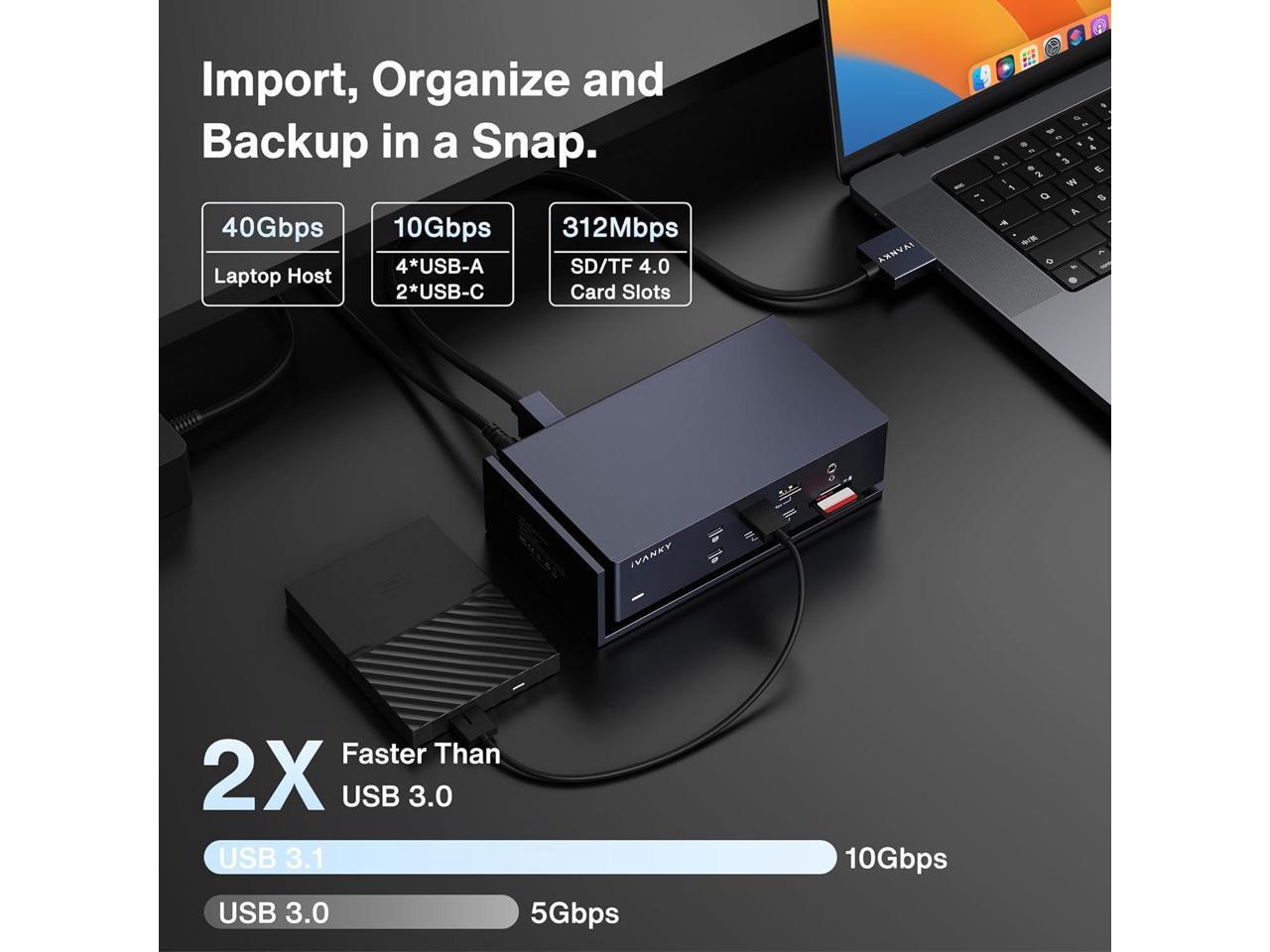 iVANKY FusionDock Max 1 Compatible with Thunderbolt 4, 20-in-1 Quad 6K@60Hz Monitor MacBook Docking Station, 40Gbps Dock for Mac M1/M2/M3 Pro/Max